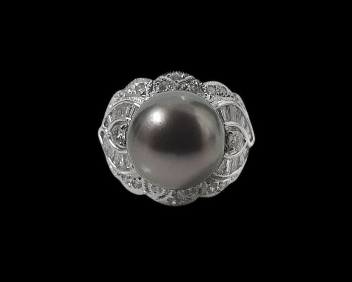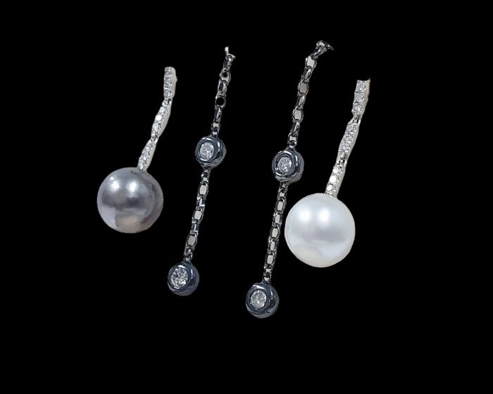 珍珠每顆11mm長3.2cm黑白二色 特殊處理黑色 鑽石每顆約10分 長5.5cm 附證書 精美盒裝