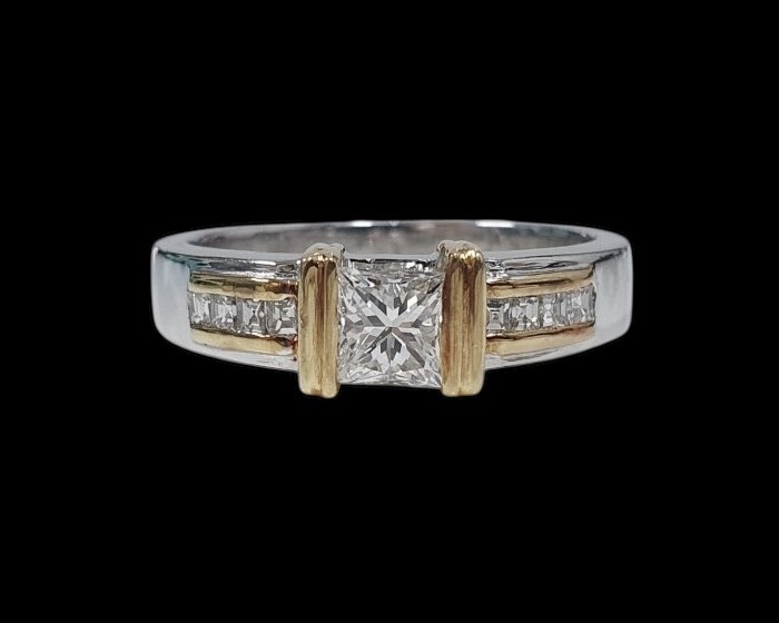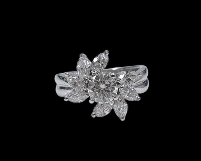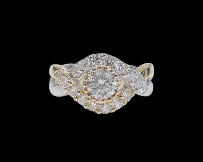 天然鑽石戒指 雙色造型 主鑽63分 8心8箭 18K金鑽石台 配鑽約0.46ct 國際圍13號 面寬1.1cm 總重1.37錢 附精美盒裝 店保卡
