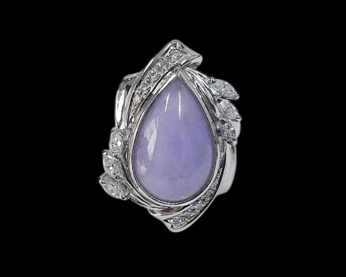 天然紫翡翠玉戒 梨型 大方設計款 翡翠1.7x1.5cm