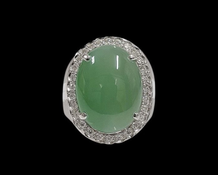 天然緬甸翡翠 滿綠A貨玉戒 蛋面大方款 翡翠17.3x11.4mm