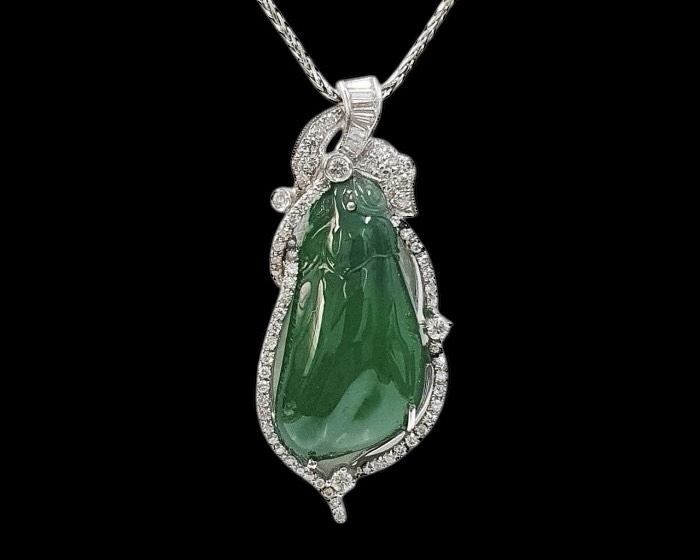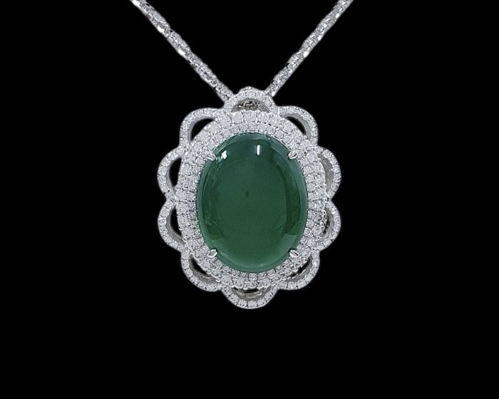 大顆配鑽彰顯貴氣 滿綠玉墜 水頭漂亮