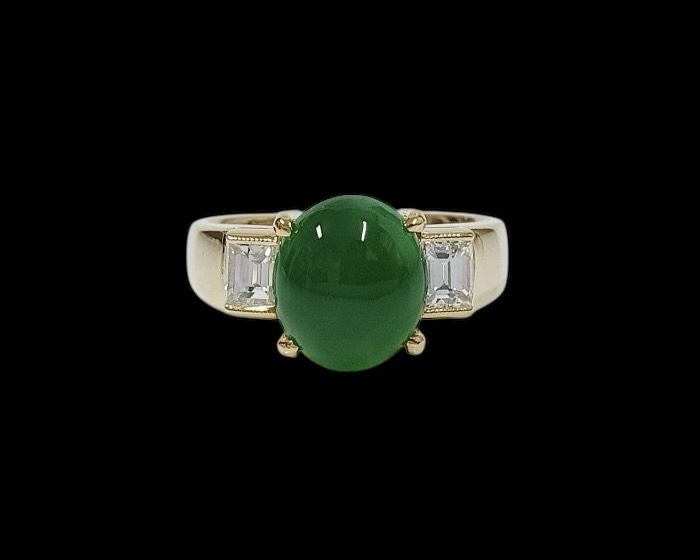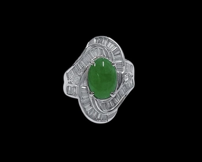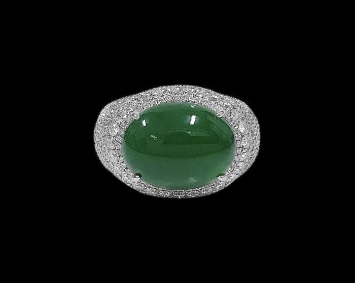 天然A貨緬甸翡翠 滿綠A貨玉戒