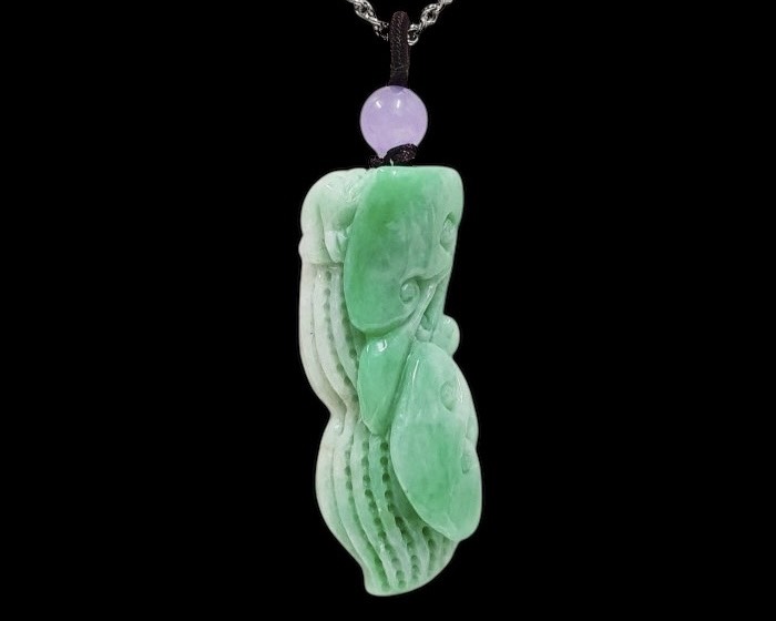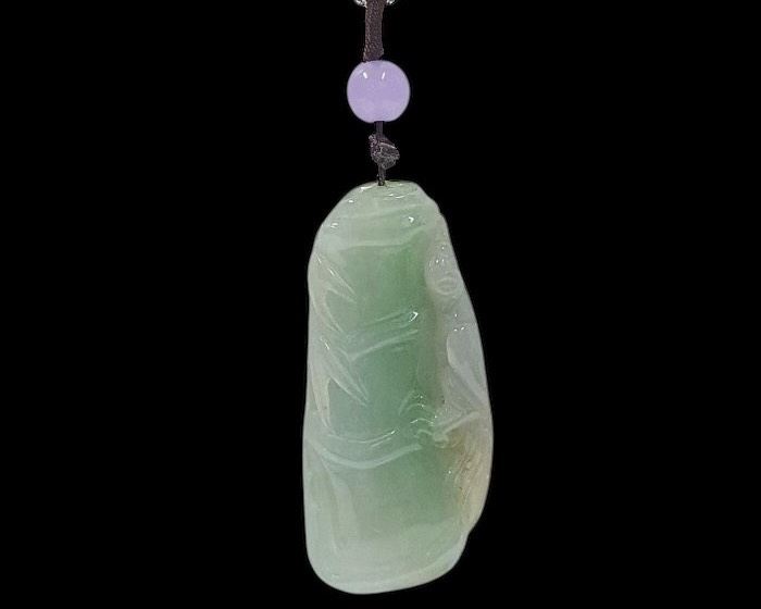 天然翡翠A貨 緬甸玉 擺件 掛件 竹節雕刻 尺寸4.8x2.3x1.1cm 附鋼鍊 精美盒裝 店保卡