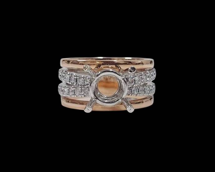 全新品 天然鑽石女戒空台 適用2~2.5克拉 雙色排鑽