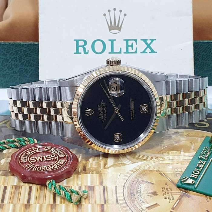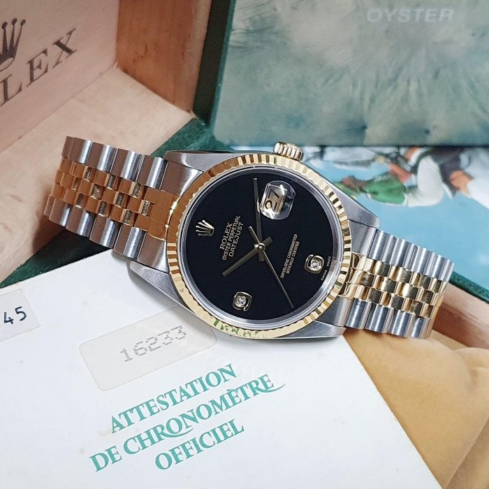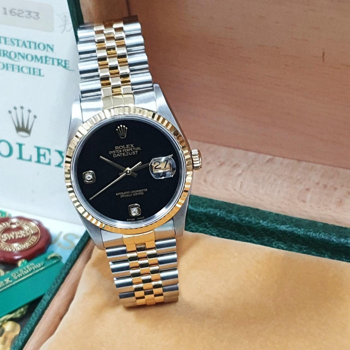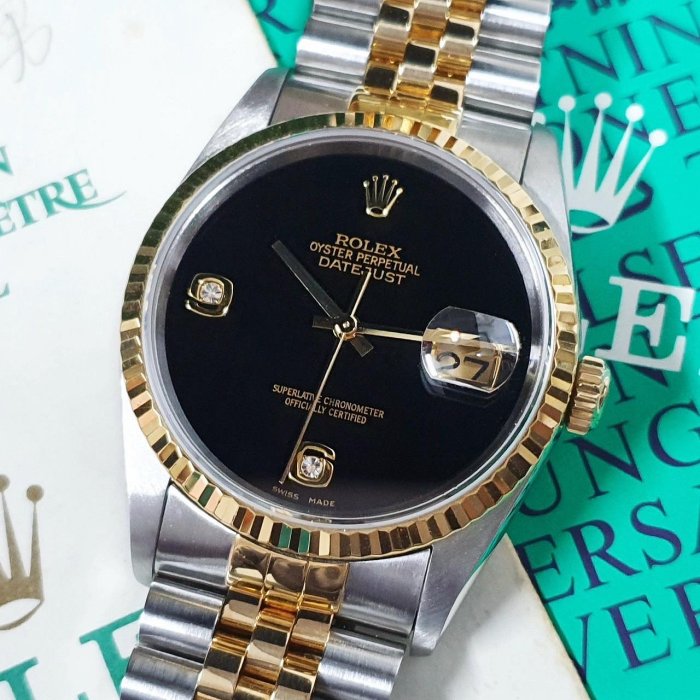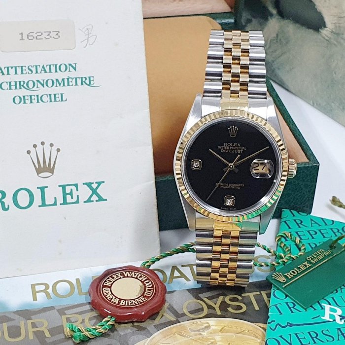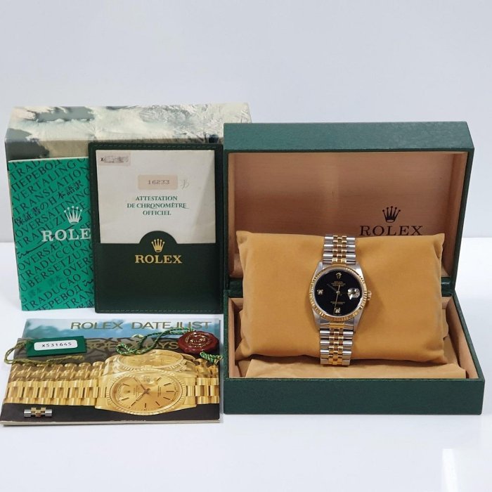 ROLEX 勞力士 16233 Datejust 蠔式日誌 全配件 市場罕有 黑瑪瑙6.9鑽 X字頭 原廠全配件 保養完成