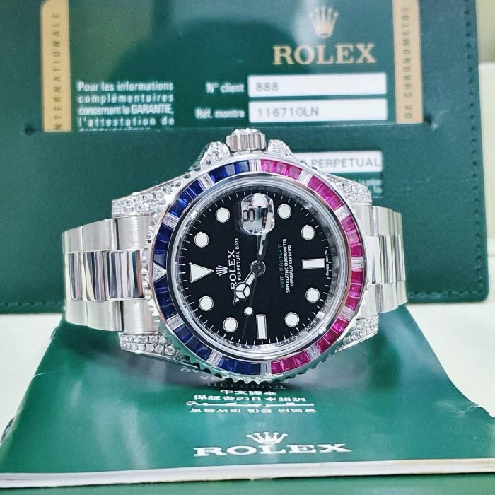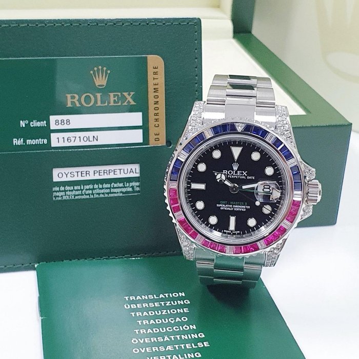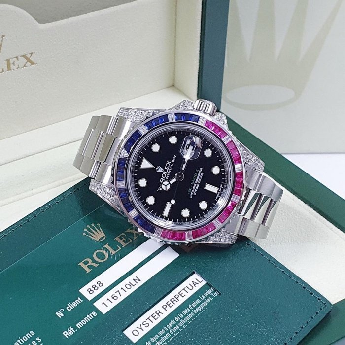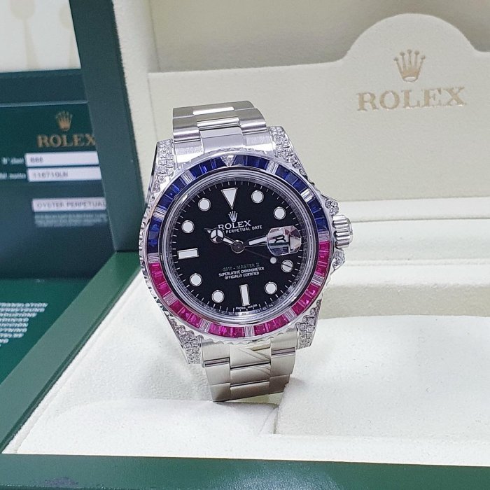 ROLEX 勞力士 116710LN 改116759 GMT系列 2014/10卡 後加紅藍寶錶圈/鑽腳 感受百萬級別 錶徑40mm 自動上鍊 不鏽鋼材質 防水100米 原廠盒單齊全 保養完成