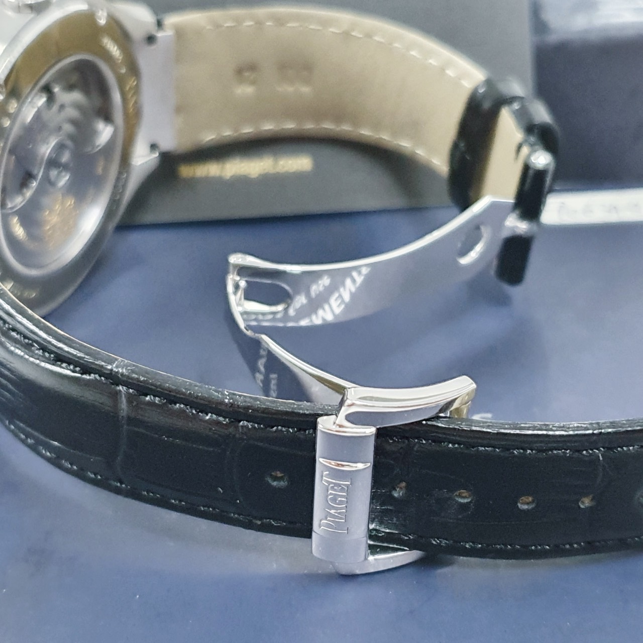 PIAGET伯爵 POLO系列 G0A31159 原廠鑽圈 18K白金 底蓋裸空 原廠皮帶錶扣 錶徑43mm 自動上鍊 18K白金材質 生活防水 原廠盒單齊全 保養完成