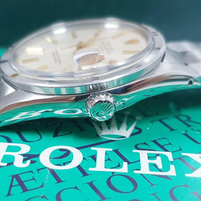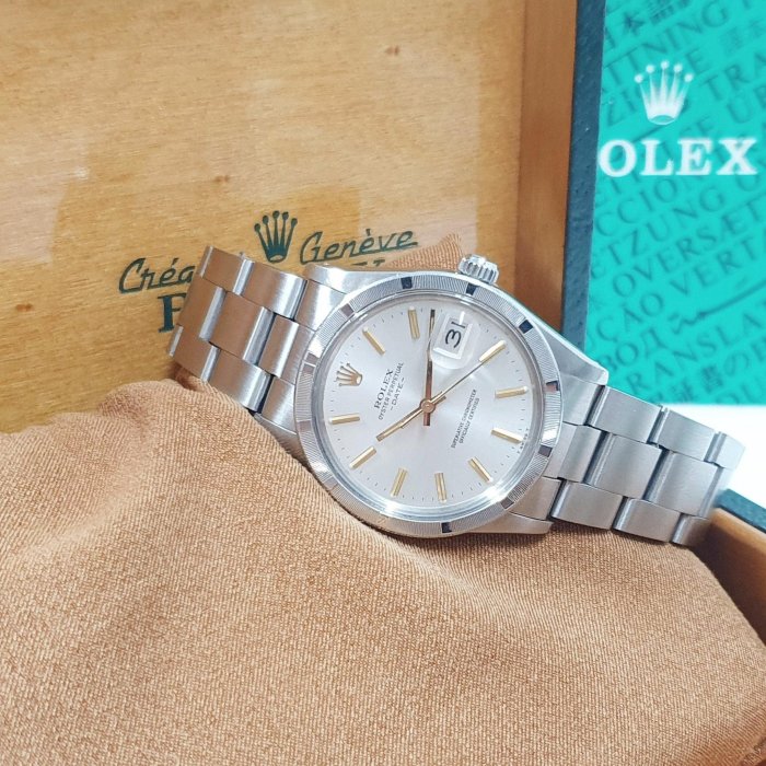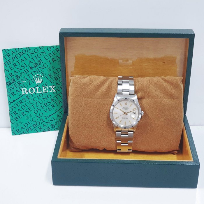 ROLEX 勞力士 15010 蠔式恆動 市場稀少 金色時標 十三劃錶圈 銀色面盤 錶徑34mm 自動上鍊 不鏽鋼材質 防水100米 675萬號字頭 原廠盒裝 店保卡 保養完成