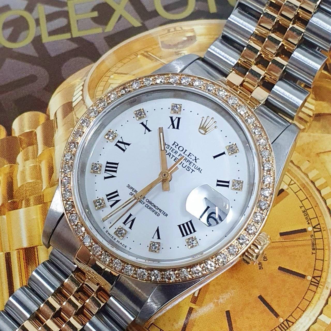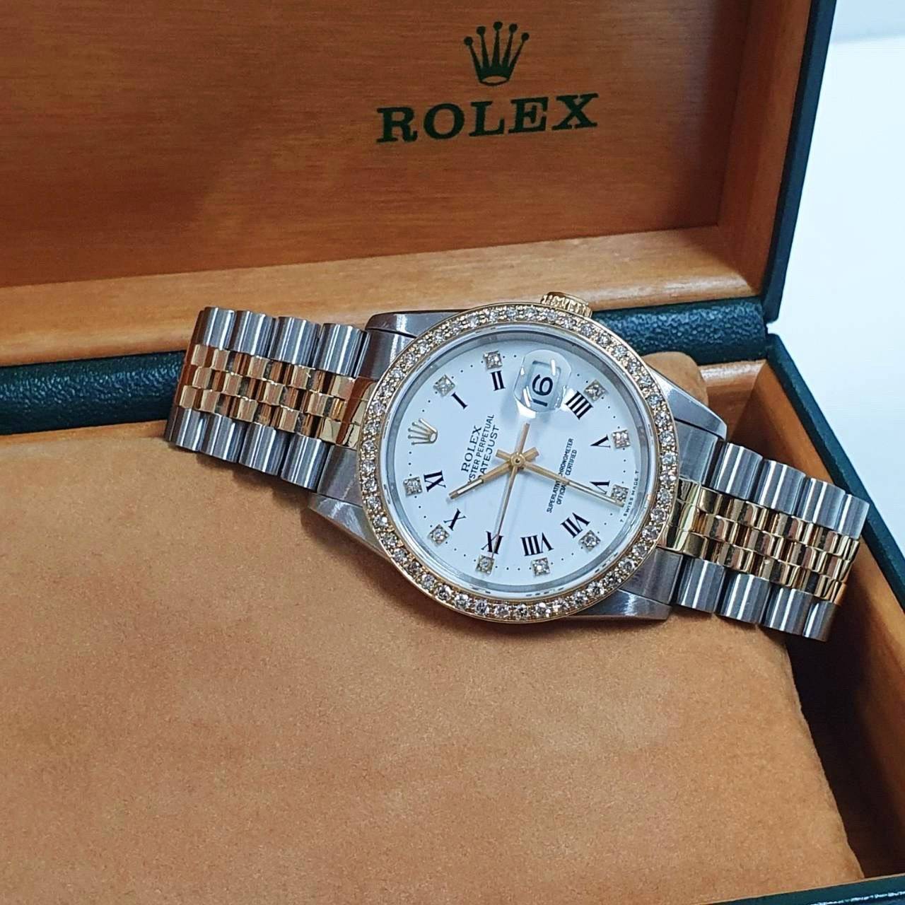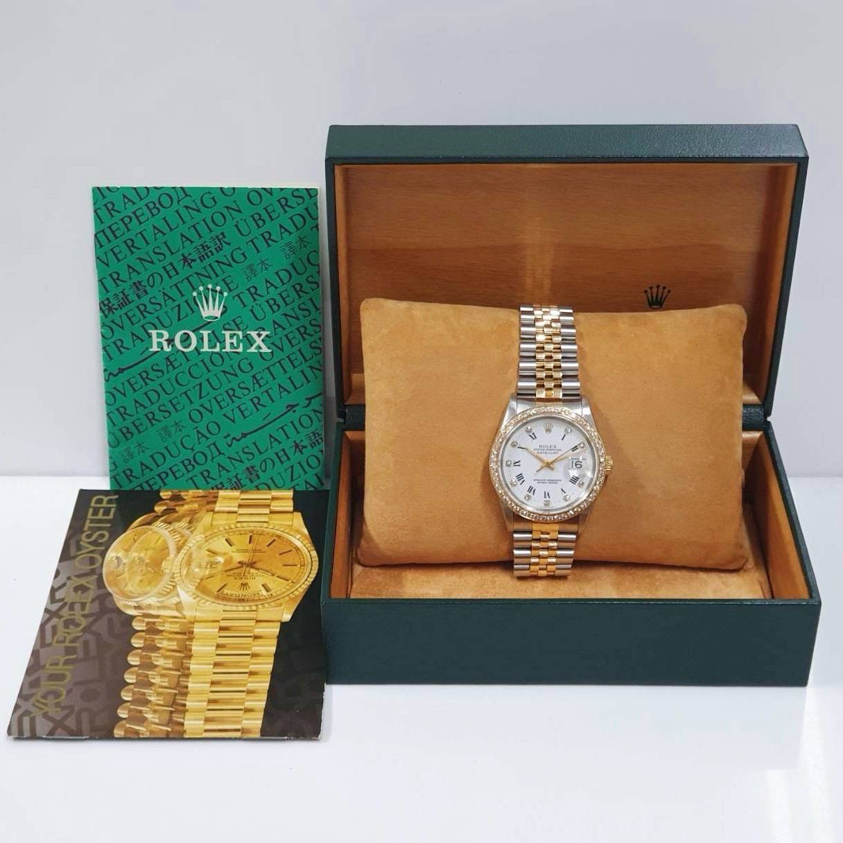 ROLEX 勞力士 16233 Datejust 蠔式日誌 台灣AD 後加鑽圈 白羅馬十鑽面盤 錶徑36mm 自動上鍊 18K金及不鏽鋼 防水100米 E字頭 原廠盒 店保卡 缺證書 保養完成