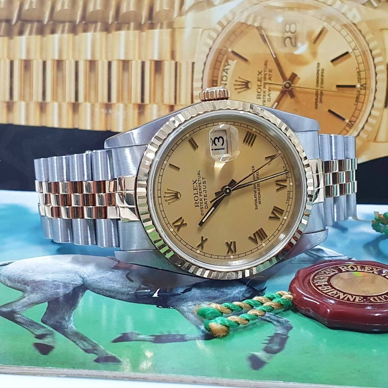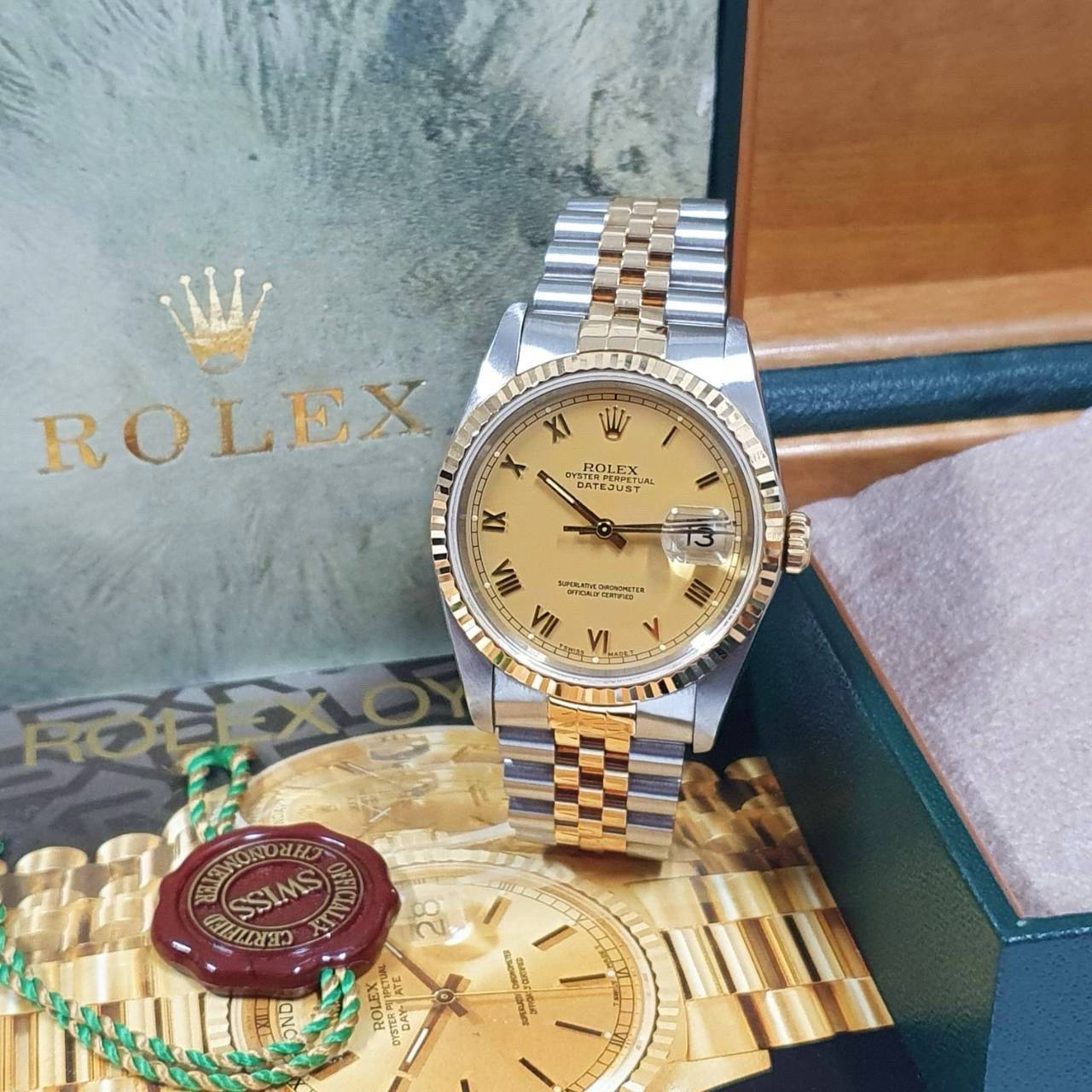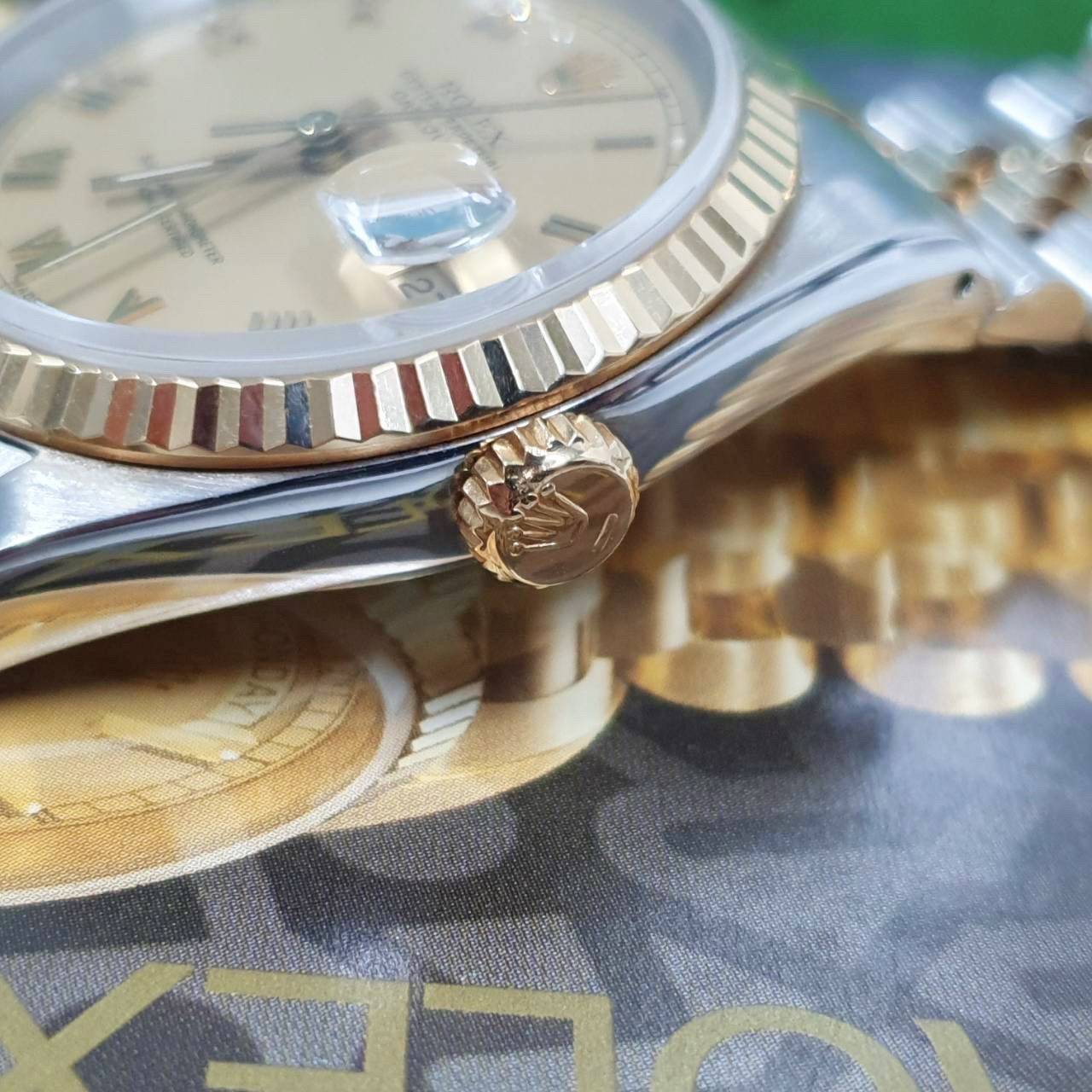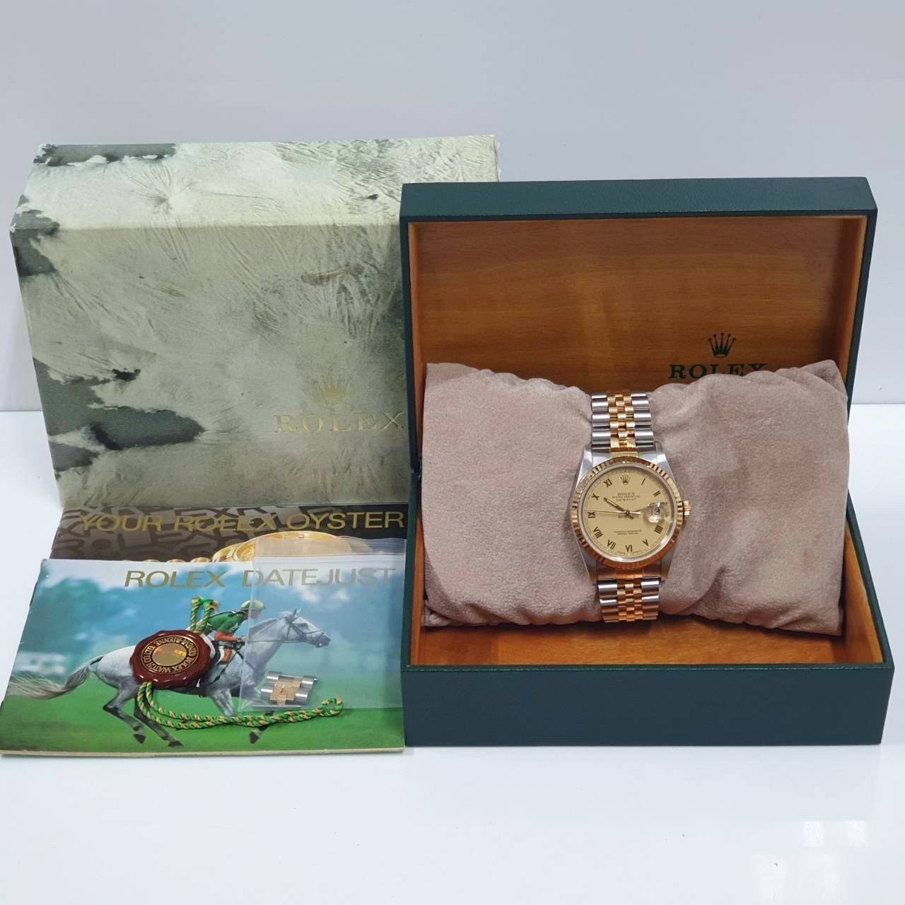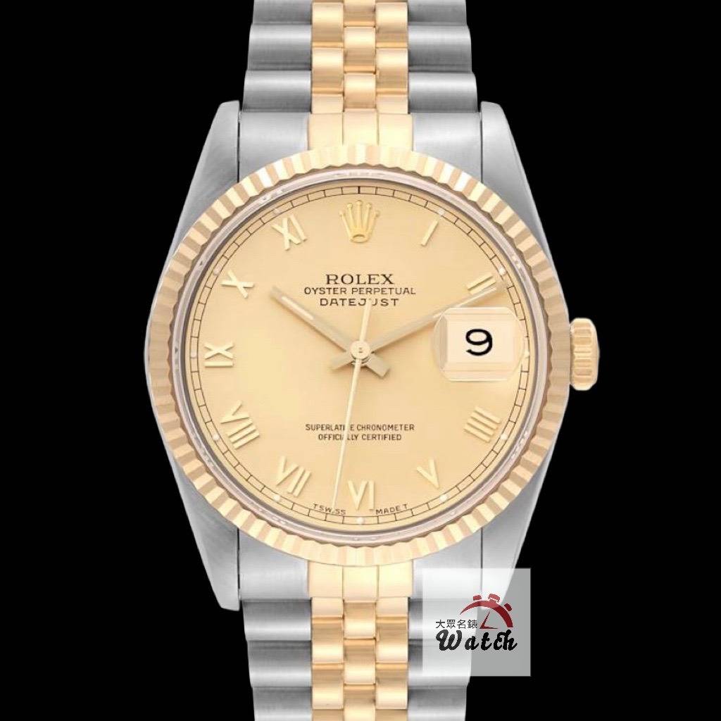 ROLEX勞力士 16233 Datejust 蠔式日誌 太陽圈 金色羅馬面盤 錶徑36mm 自動上鍊 18K金及不鏽鋼 防水100米 E字頭 缺證書 原廠盒店保卡 保養完成