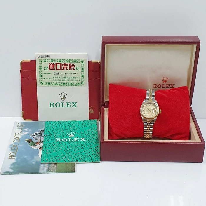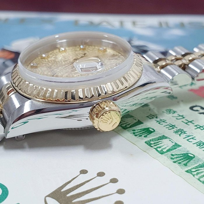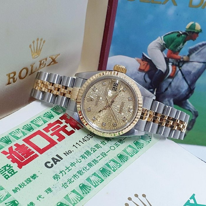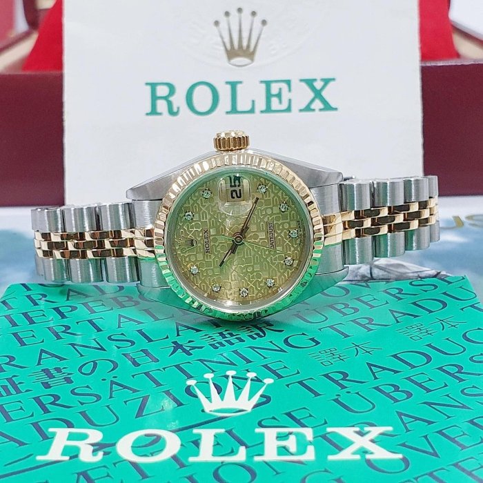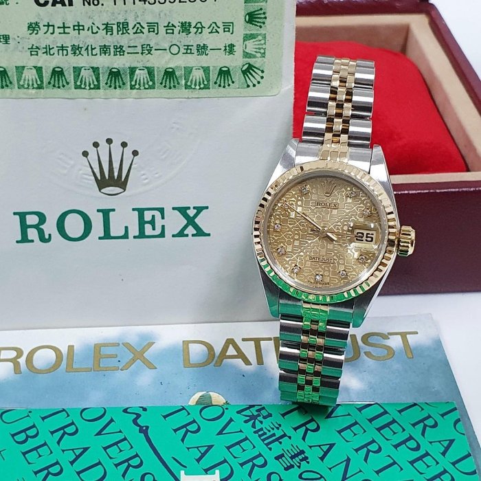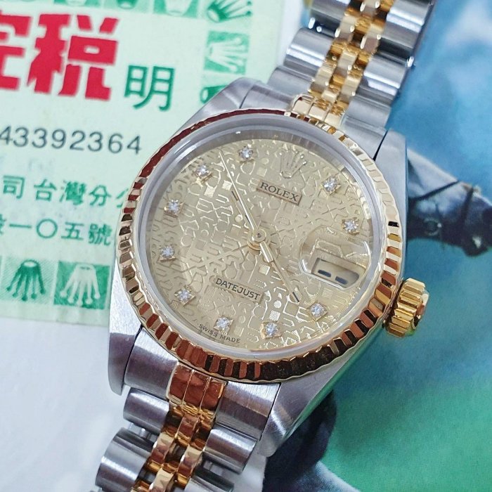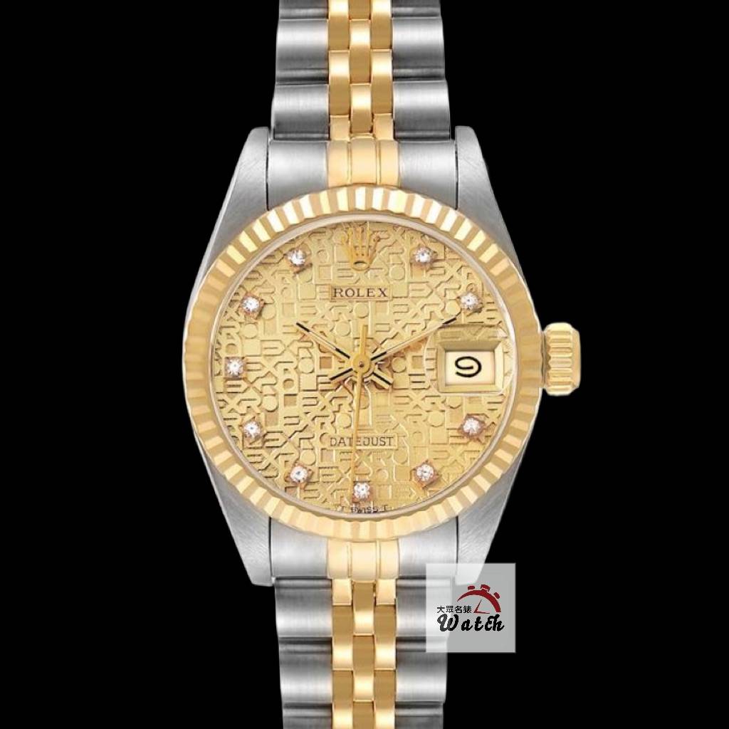 ROLEX勞力士 69173 Datejust 蠔式女錶 日誌型 金色十鑽紀念面盤 錶徑26mm 自動上鍊 18K金及不鏽鋼 防水100米 W字頭 原廠盒單齊全 保養完成