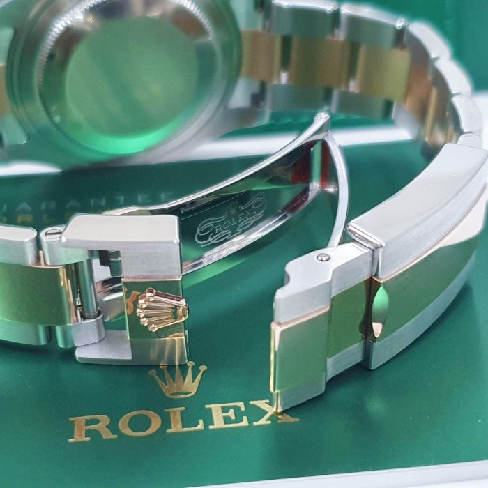 材質: 18K玫瑰金+904L精鋼材質錶殼、錶帶、摺疊扣、旋入式錶冠 / 雙向旋轉錶框 / 巧克力面盤、夜光賓士指針、時標 / 藍寶石水晶玻璃 / 防偽內圈
