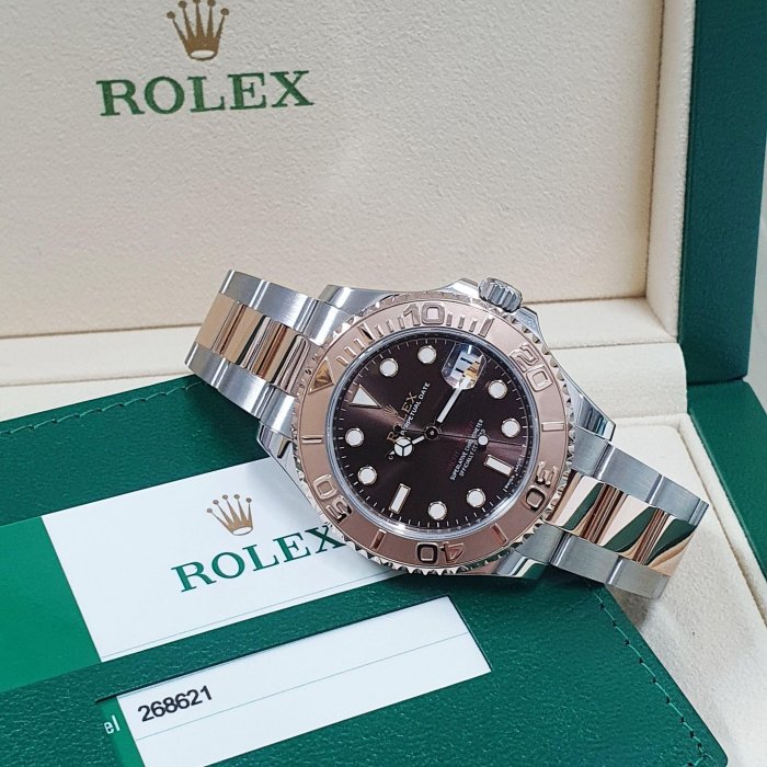 ROLEX 勞力士 268621 Yacht-Master 遊艇名仕型 2018/09 永恆玫瑰金 巧克力面盤 中型  自動上鍊 錶徑37mm 盒單齊全