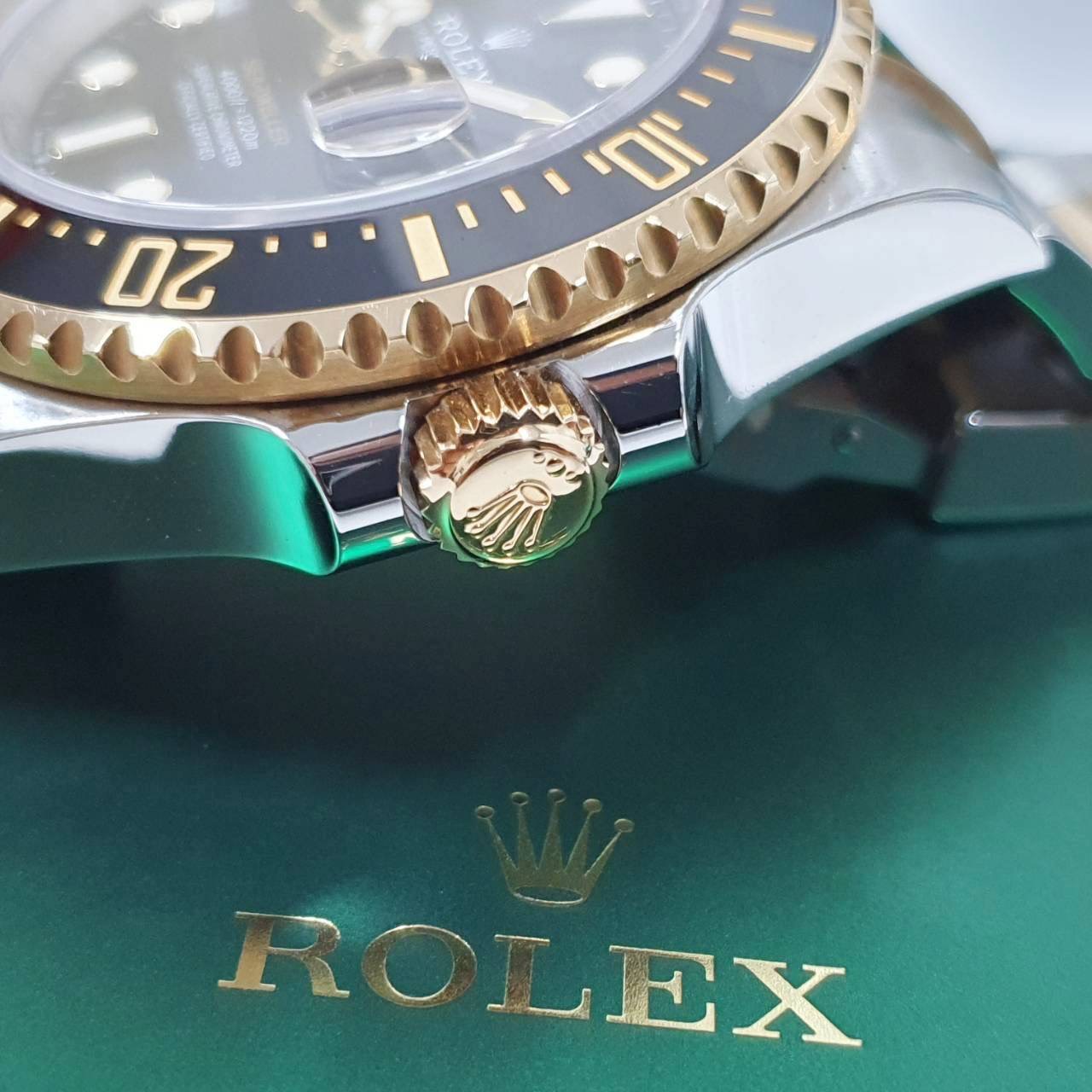 18K金及904L精鋼材質錶殼、錶鍊帶及摺疊帶扣 / 黑色面盤 / 夜光指針及時標 / 潛水刻度黑色單向旋轉陶瓷錶圈 / 藍寶石水晶玻璃鏡面 |