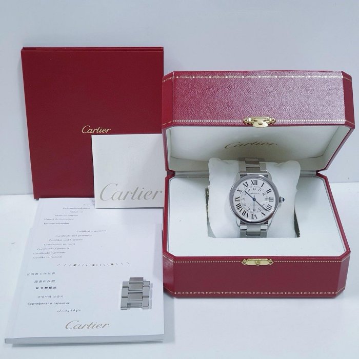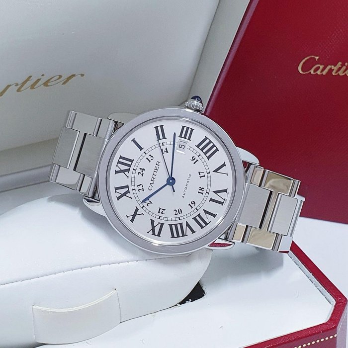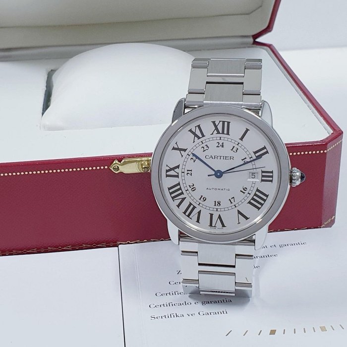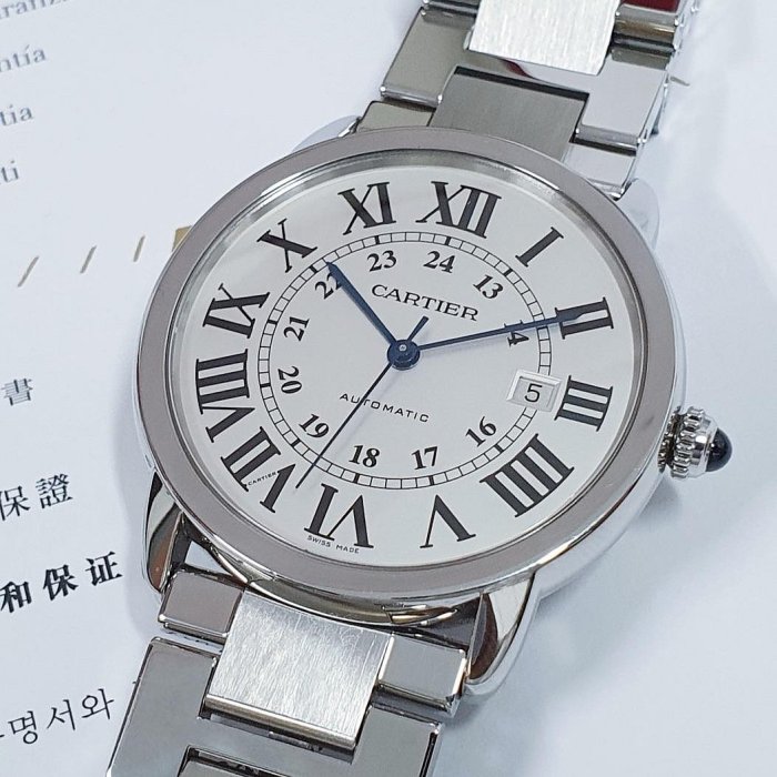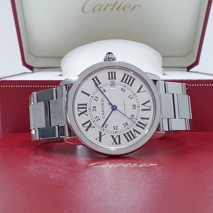 Cartier 卡地亞 Ronde solo倫敦系列 2016/07 羅馬時標 24小時顯示 錶徑42mm 自動上鍊 不鏽鋼材質 防水30米 原廠盒單齊全 保養完成