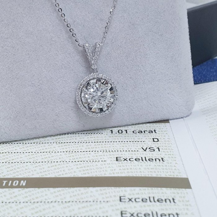 全新品 GIA鑽石項鍊 放大效果十足 主鑽1.01克拉 最高D色VS1 3EX完美車工 8心8箭 香港18K金墜台 配鑽約0.25ct 墜2x1.2cm 白金項鍊 附GIA證書 精美盒裝