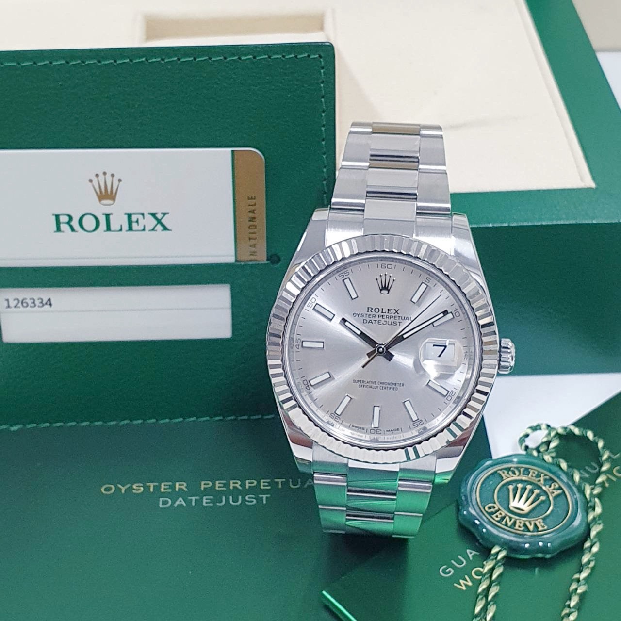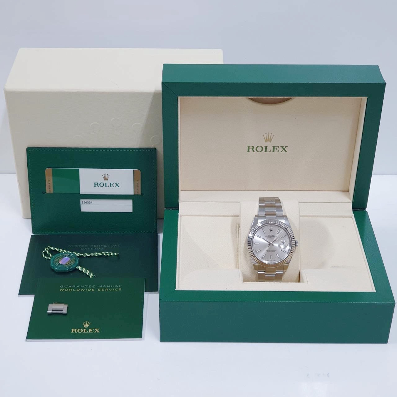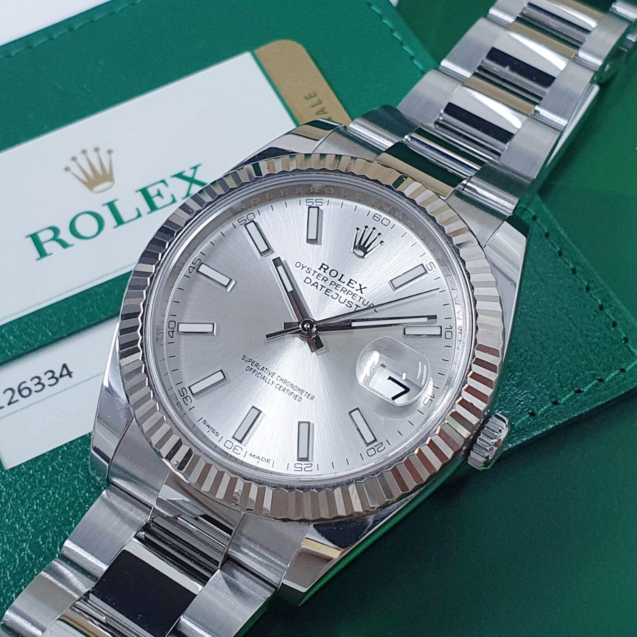 Rolex 勞力士 126334 Datejust 蠔式日誌 銀面 2018/09 三版帶 錶徑41mm 自動上鍊 18K白金及不鏽鋼材質 防水100米 原廠盒單齊全 保養完成