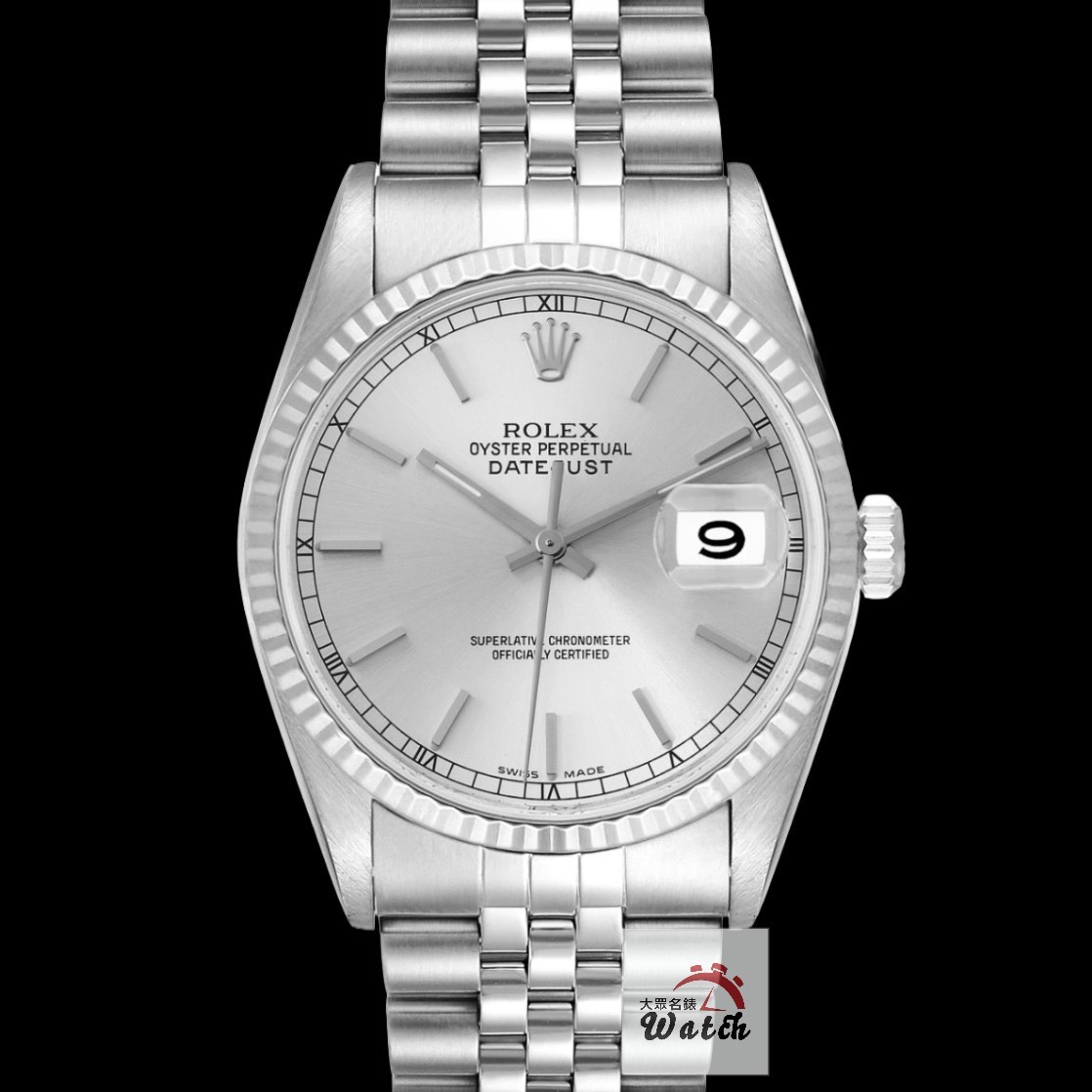 ROLEX 勞力士 16234 Datejust 蠔式日誌 銀色面盤 錶徑36mm自動上鍊 不鏽鋼材質 防水100米 X字頭 精美盒裝 店保卡 保養完成