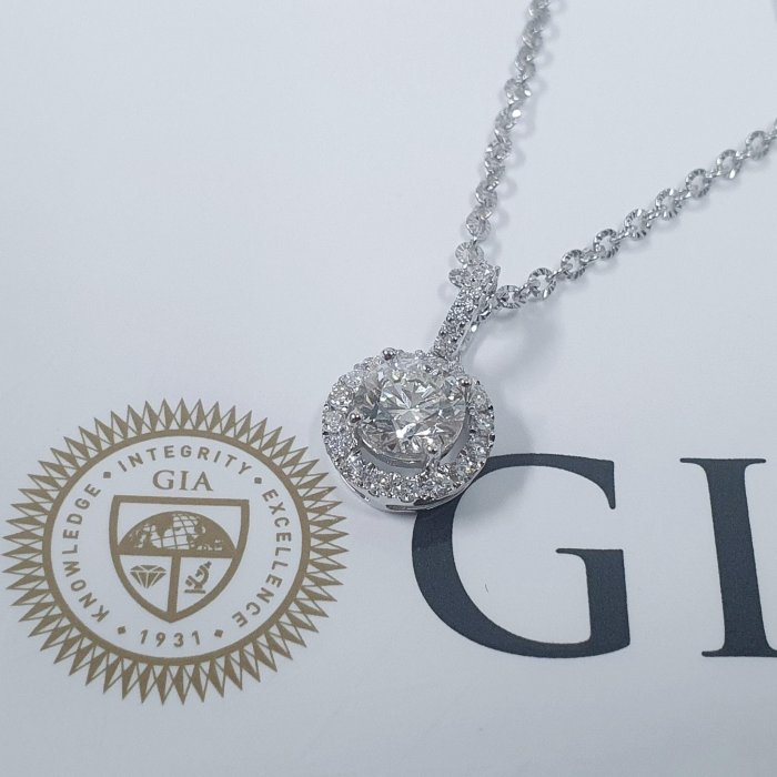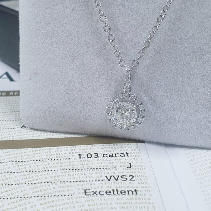 全新品 GIA鑽石項鍊 主鑽1.03克拉 J色 VVS2 8心8箭 3EX完美車工 750K金墜台 配鑽約0.20ct 墜1.8x1.1cm 白金項鍊 附GIA證書 精美盒裝