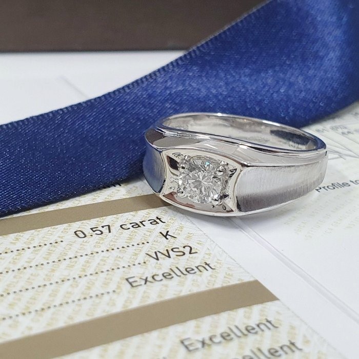 GIA鑽石男戒 主鑽57分 K色 VVS2 完美車工3EX 8心8箭 750K金戒台 國際圍17.5號 面寬1cm 總重2.53錢 附GIA證書 精美盒裝