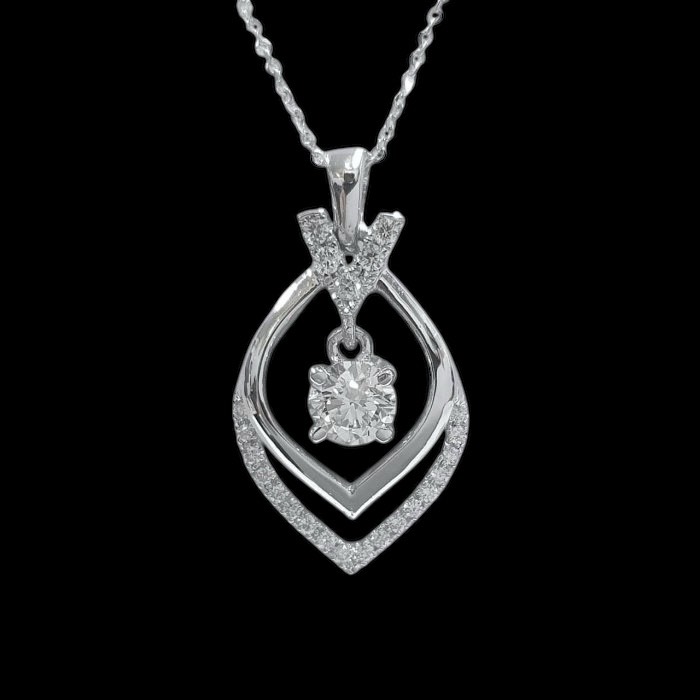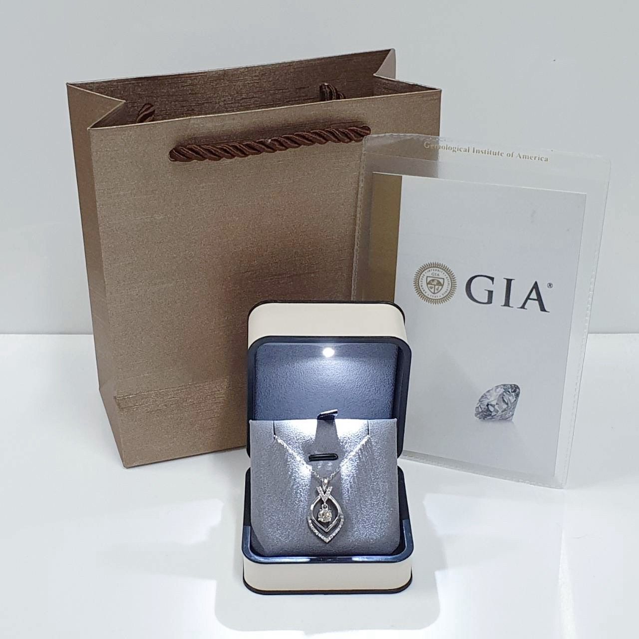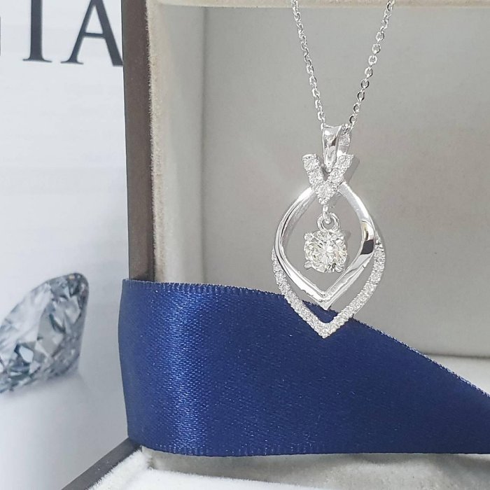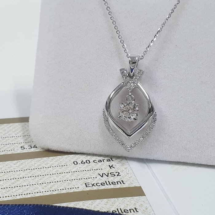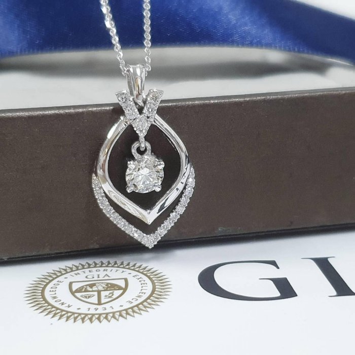 全新品GIA鑽石項鍊 V鑽雙圈 鑽圈款 主鑽60分 K色VVS2 3EX完美車工 8心8箭 585K金墜台 墜2.7x1.5cm 配鑽約0.27ct 重0.74錢 白金項鍊 GIA證書 精美盒裝