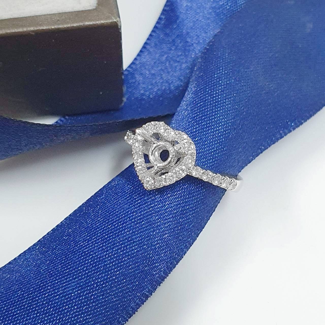 全新品 天然鑽石女戒空台 適用0.50~0.80克拉 愛心排鑽造型 14K金戒台 配鑽約0.40ct 國際圍10號 面寬0.95cm 重0.79錢 精美盒裝 店保卡