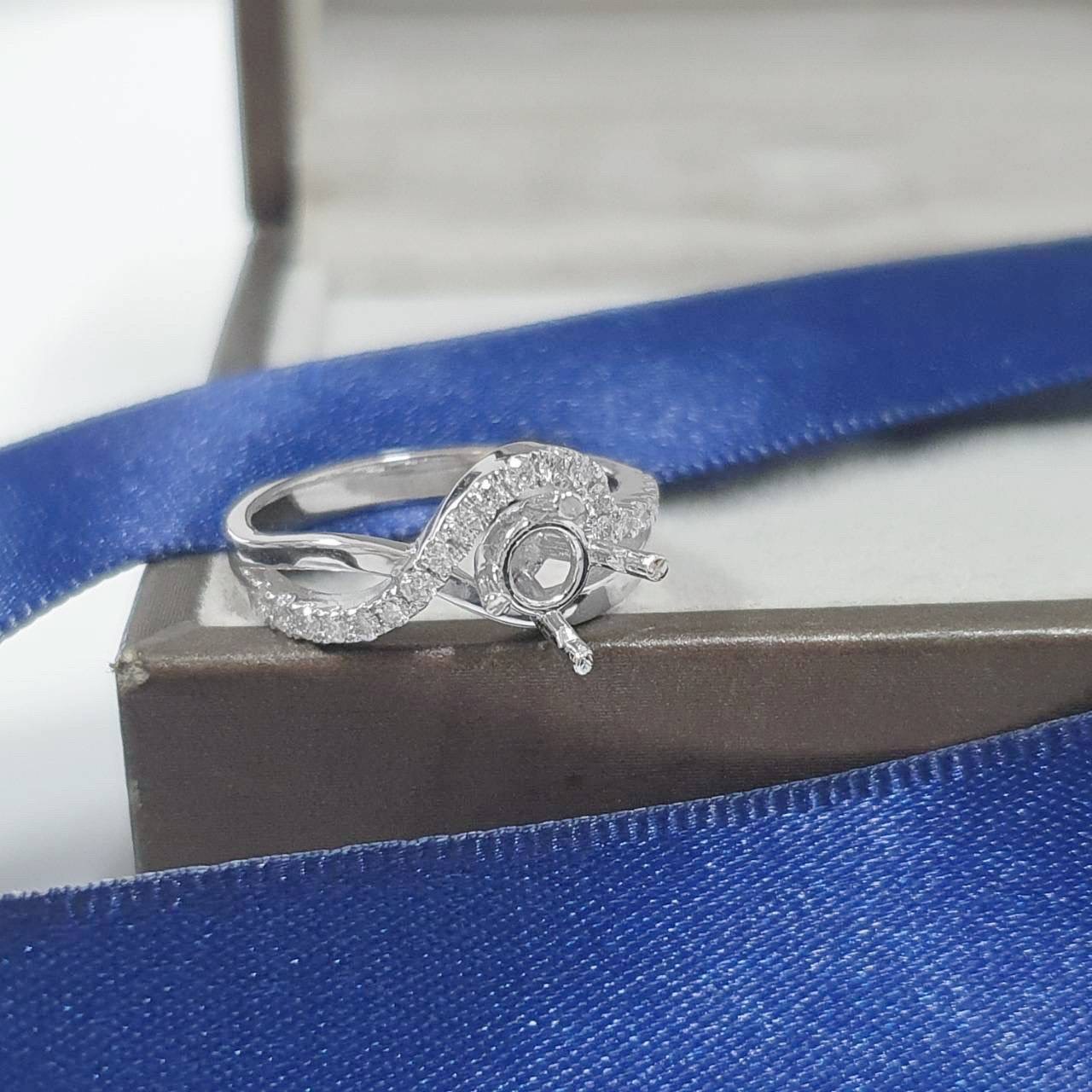 全新品 天然鑽石女戒空台 適用1~1.5克拉 不規則無限造型 PT950鉑金戒台 配鑽約0.48ct 國際圍10.5號 面寬0.8cm 重1.4錢 精美盒裝 店保卡