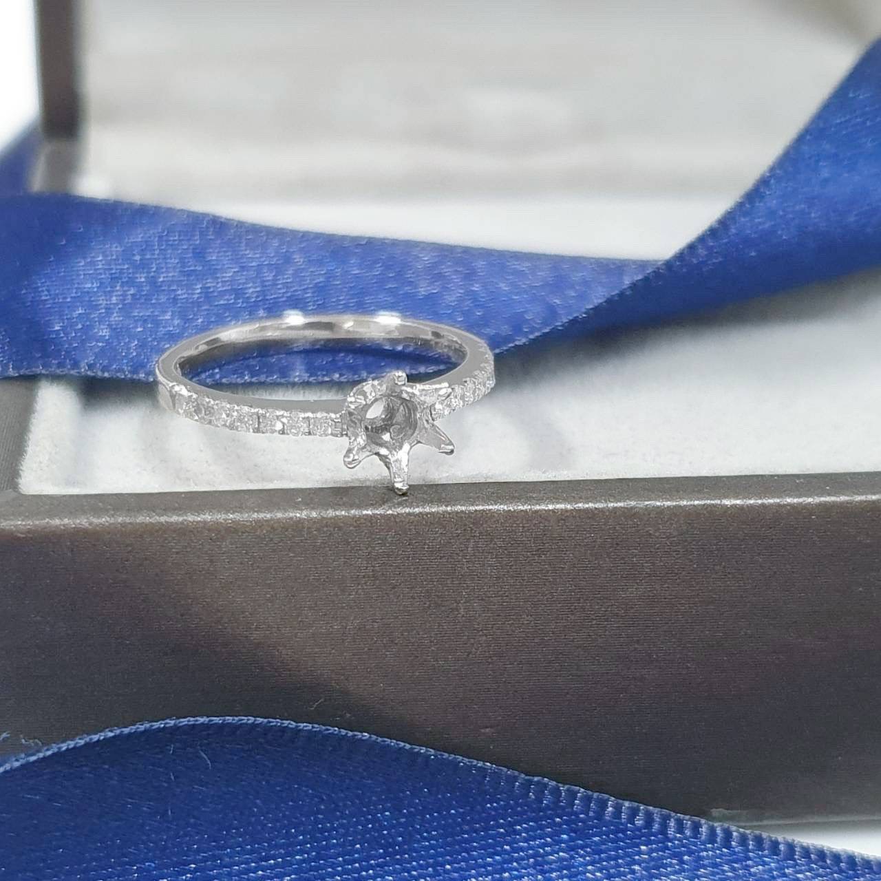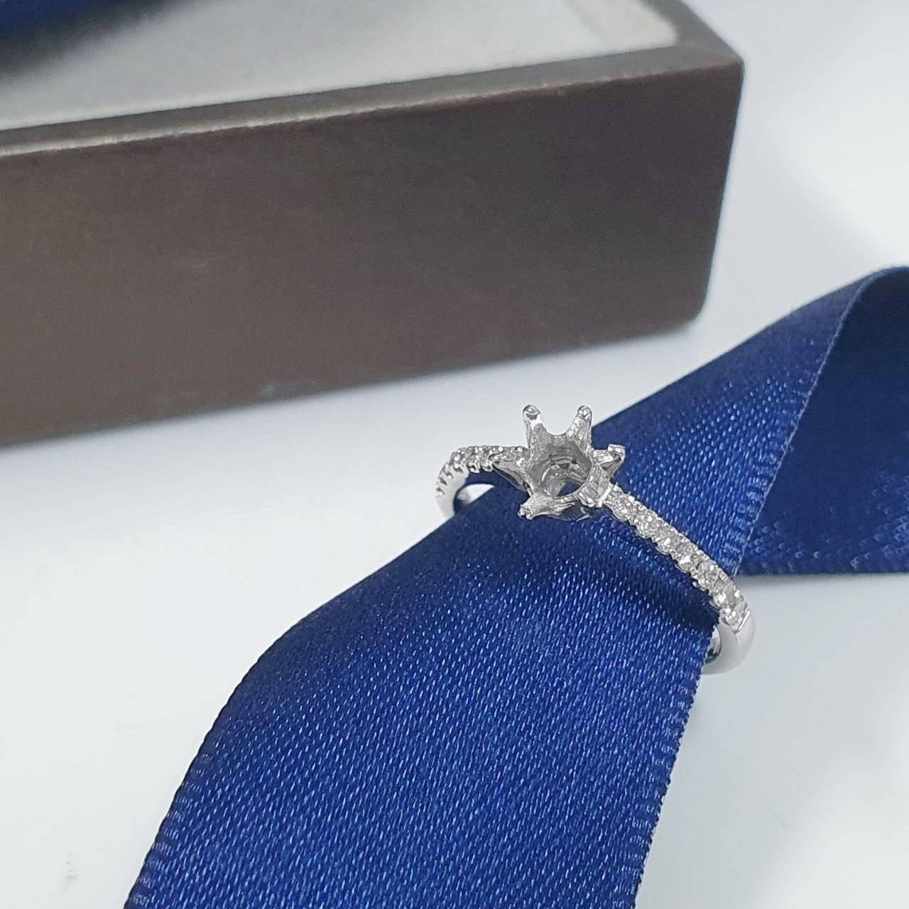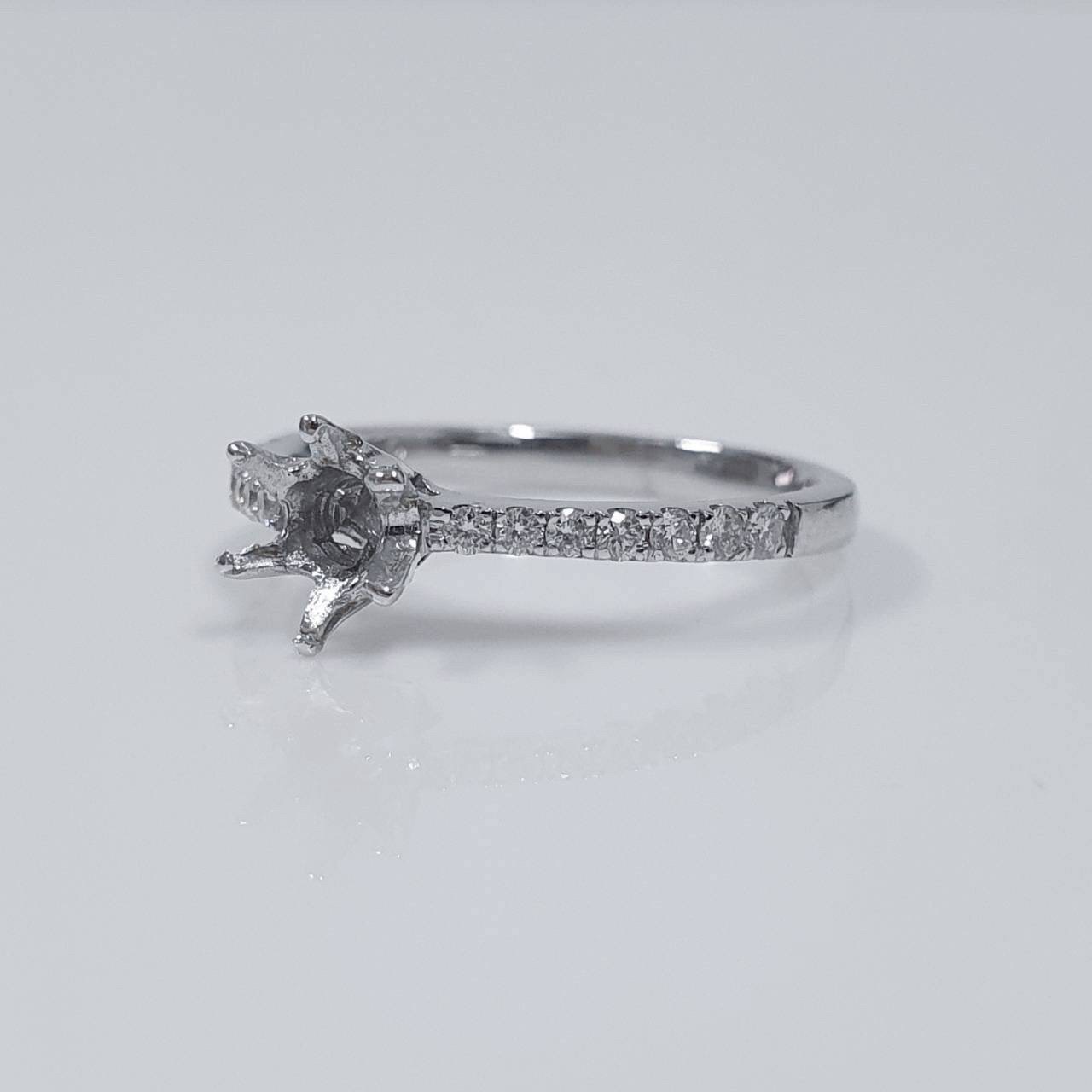 全新品 天然鑽石女戒空台 適用0.30~0.50克拉 六爪排鑽造型 14K金戒台 配鑽約0.15ct 國際圍9.5號 面寬0.6cm 重0.51錢 精美盒裝 店保卡