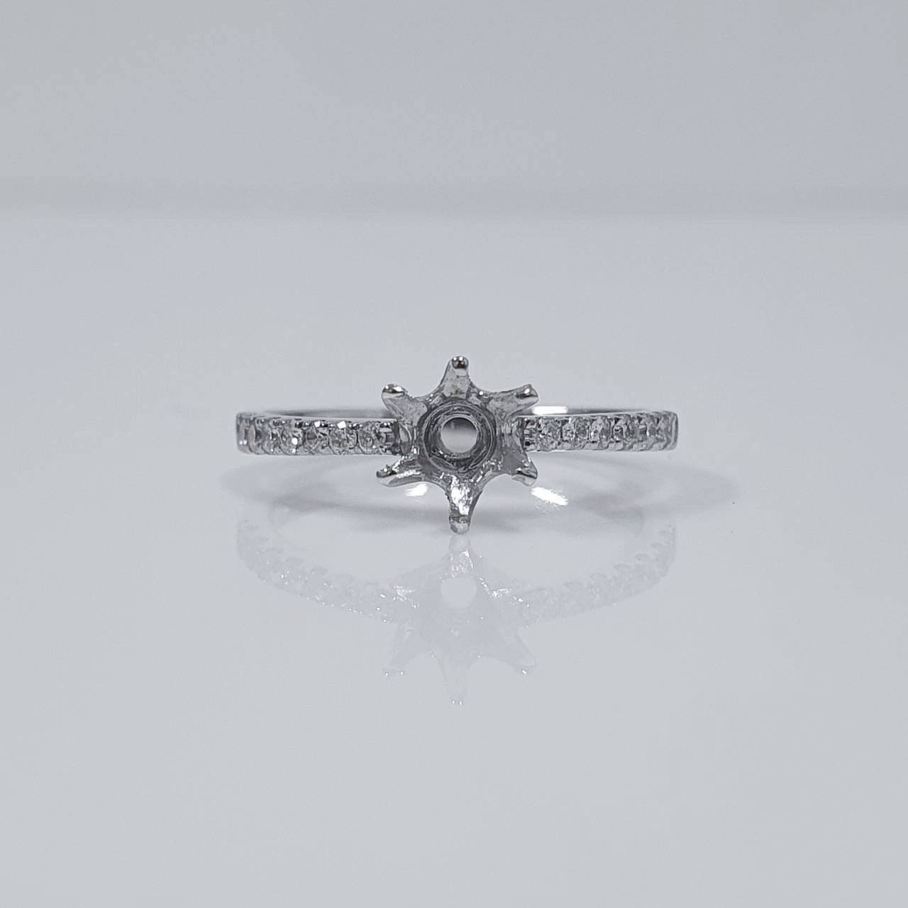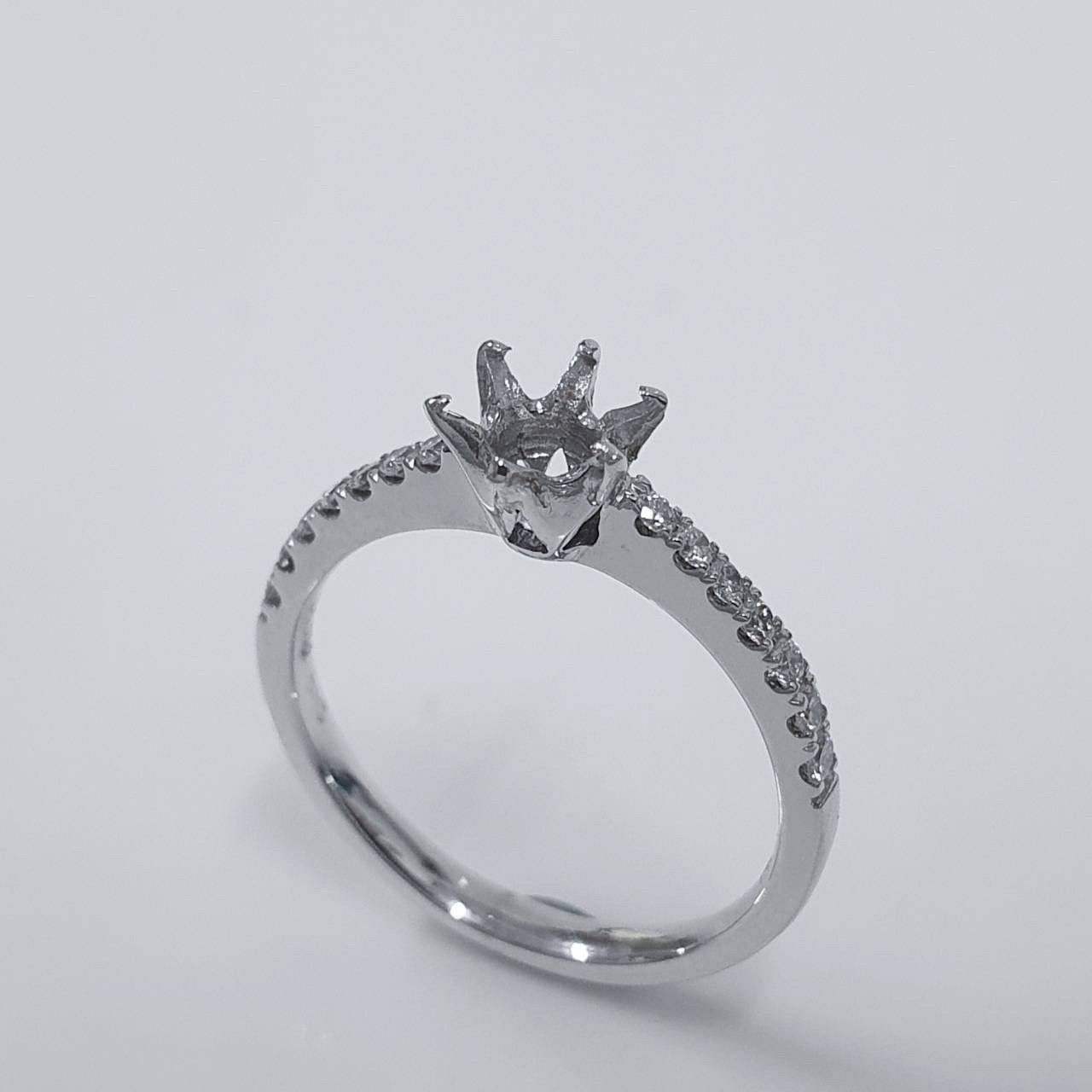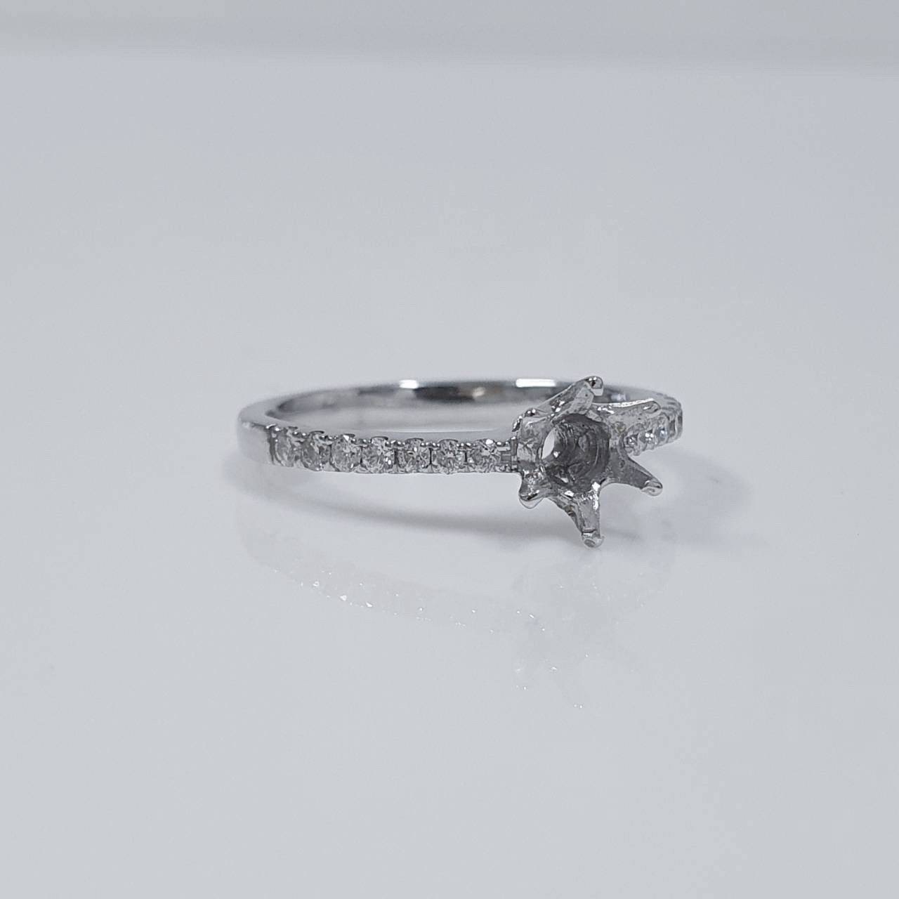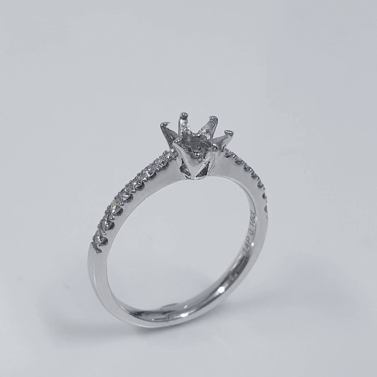 全新品 天然鑽石女戒空台 適用0.30~0.50克拉 六爪排鑽造型 14K金戒台 配鑽約0.15ct 國際圍9.5號 面寬0.6cm 重0.51錢 精美盒裝 店保卡