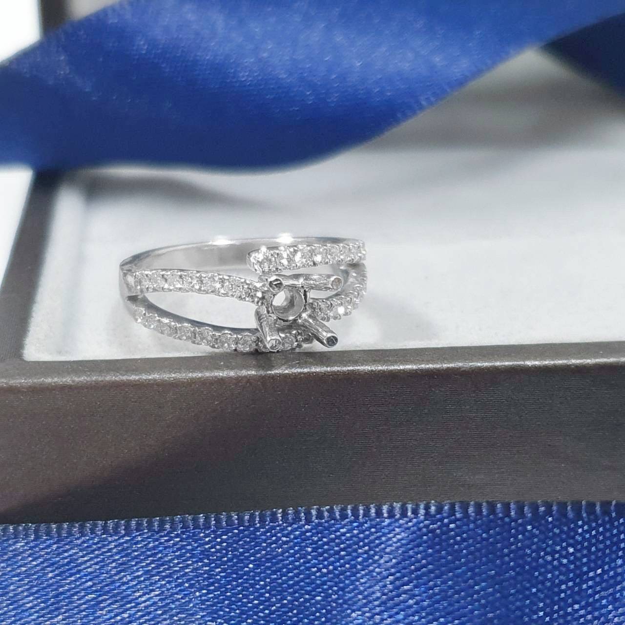 全新品 天然鑽石女戒空台 適用0.50~0.70克拉 線條唯美造型 PT950鉑金戒台 配鑽約0.26ct 國際圍10號 面寬0.8cm 重1.47錢 精美盒裝 店保卡