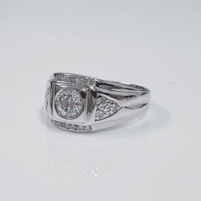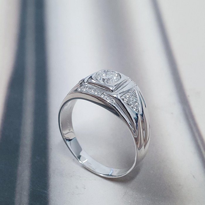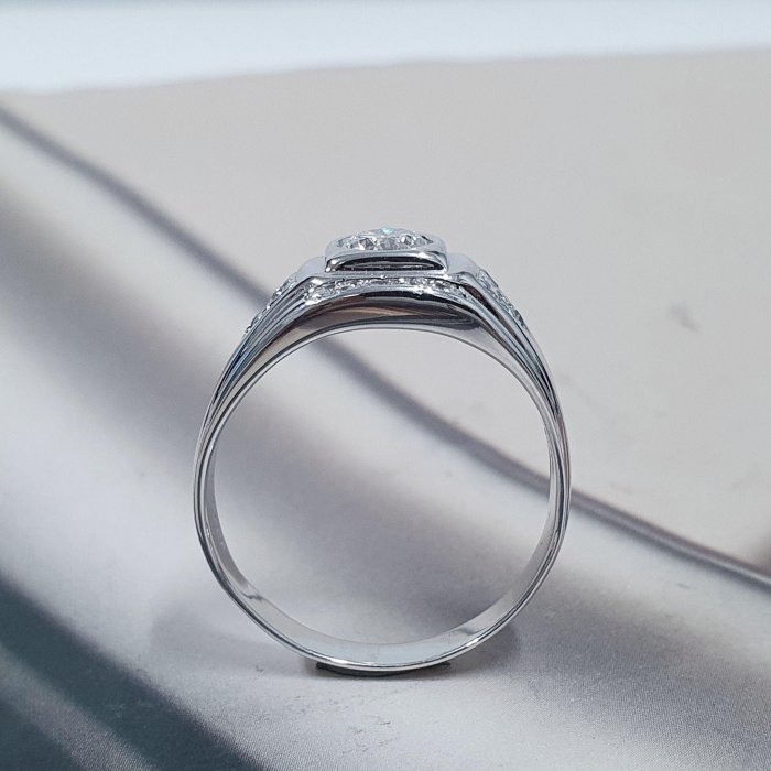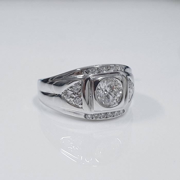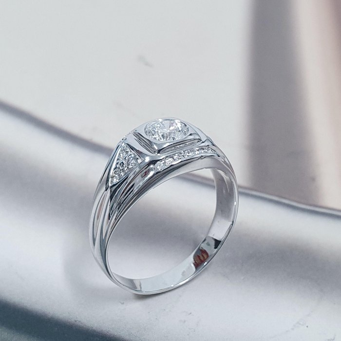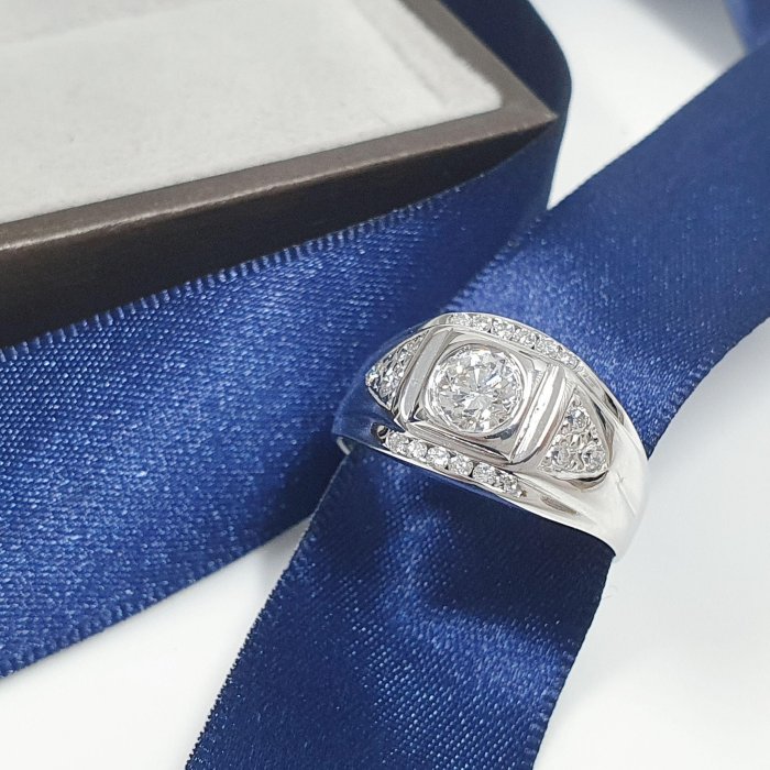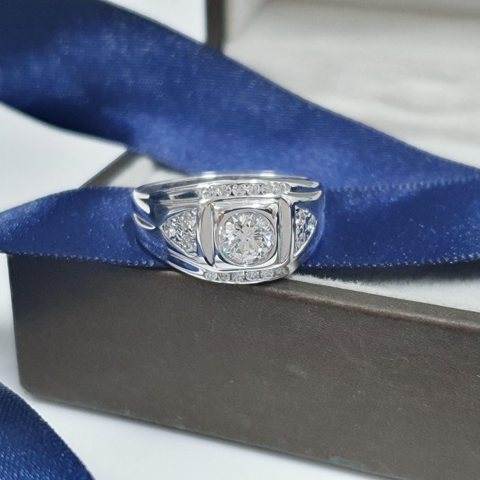 天然鑽石男戒 時尚造型 主鑽60分 配鑽約0.27ct 750K金材質 國際圍18號 面寬1.15cm 總重1.79錢 附精美盒裝 店保卡