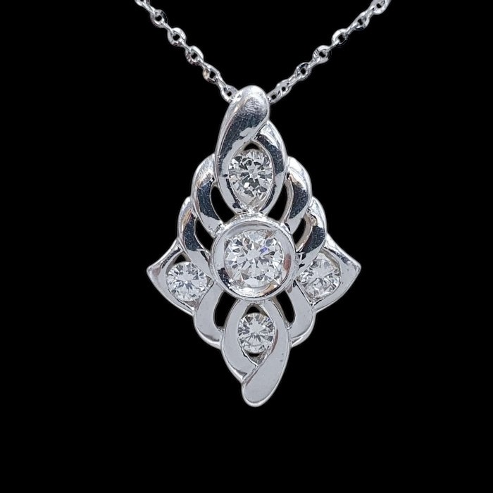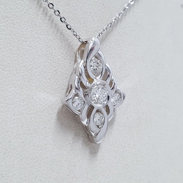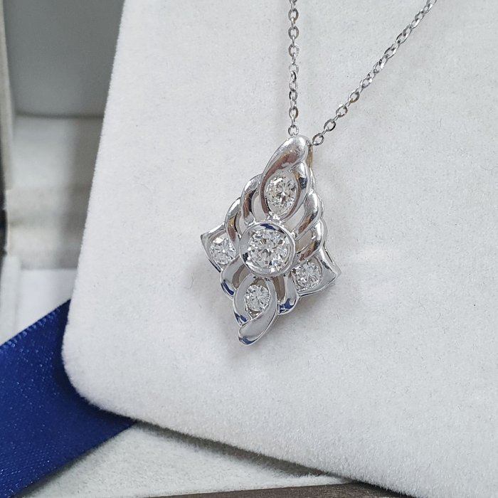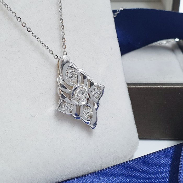 天然鑽石項鍊 主石38分8心8箭 750白K金鑽石墜台 配鑽約0.27ct 墜長2.5x1.5cm 總重1.22錢 白金項鍊 附店保卡精美盒裝