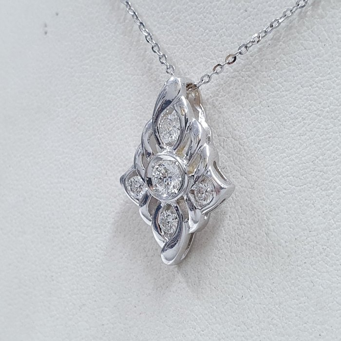 750白K金鑽石墜台 / 墜長2.5x1.5cm / 8心8箭 / 配鑽約0.27ct |