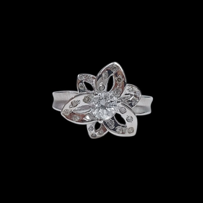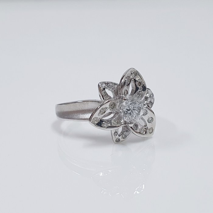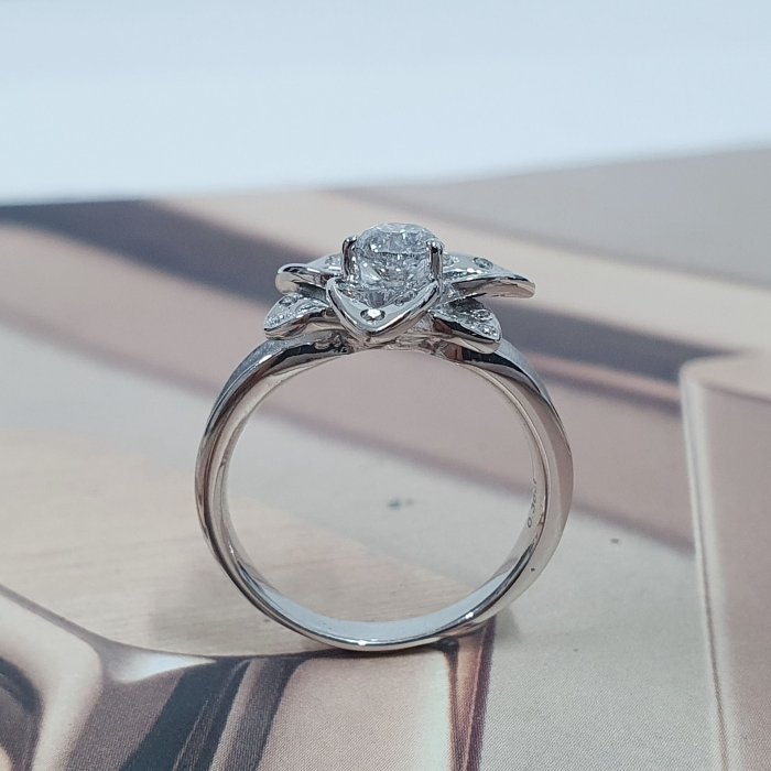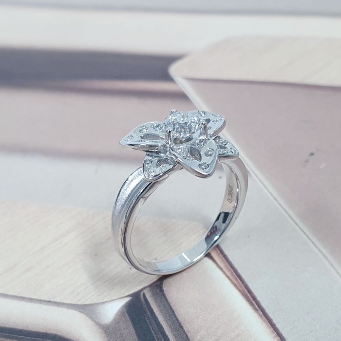 天然鑽石戒指 造型戒 主石36分 8心8箭 585K金鑽石戒台 國際圍11號 配鑽約0.10ct 面寬1.9cm 總重1.25錢 附店保卡精美盒裝