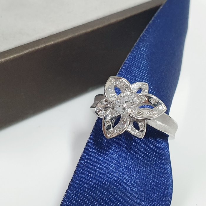 585K金鑽石戒台 / 國際圍11號 / 面寬1.9cm / 配鑽約0.10ct / 總重1.25錢 / 8心8箭 |