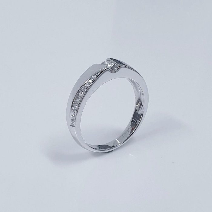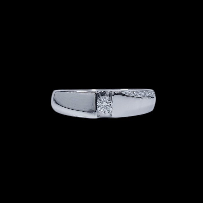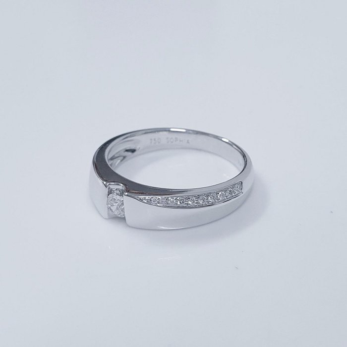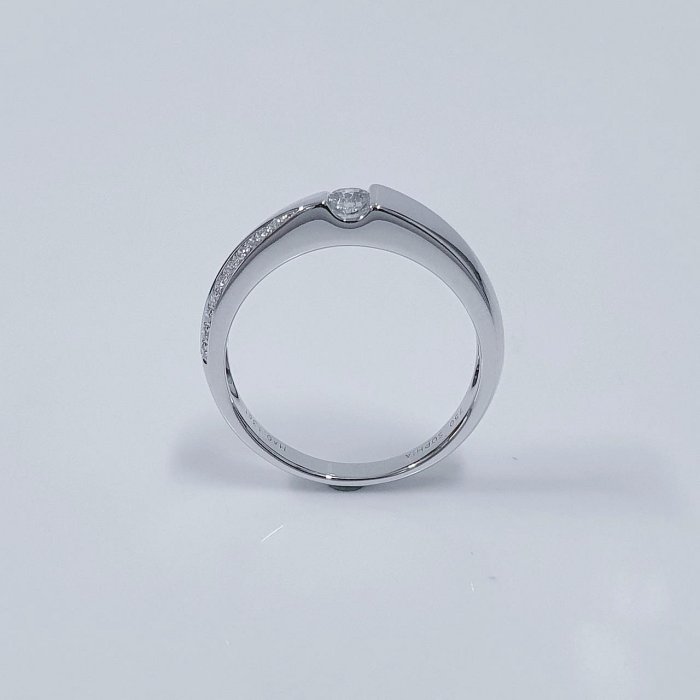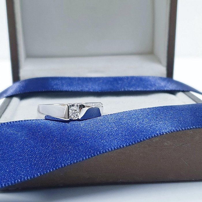 天然鑽石戒指 中性戒款 主鑽13分 750K金材質 國際圍13.5號 面寬0.5cm 配鑽約0.08ct 總重1.18錢 附精美盒裝 店保卡