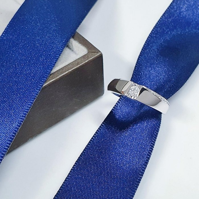 材質: PT950材質 / 國際圍8.5號 / 總重1.06錢 / 面寬0.42cm / 配鑽約0.08ct