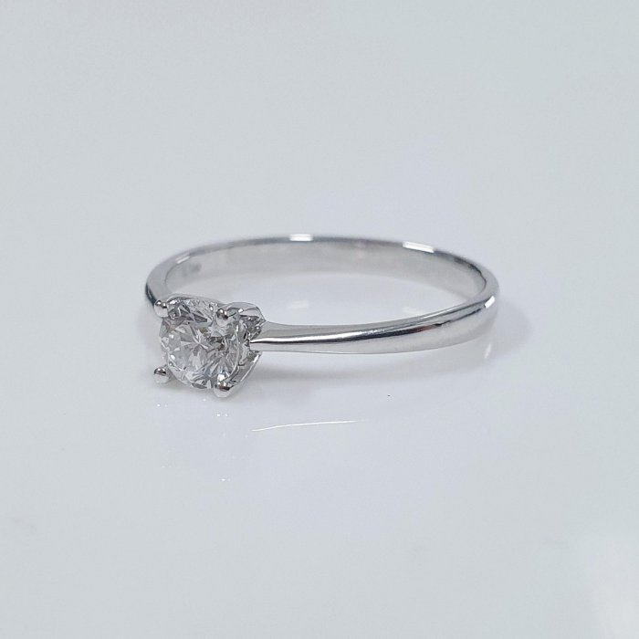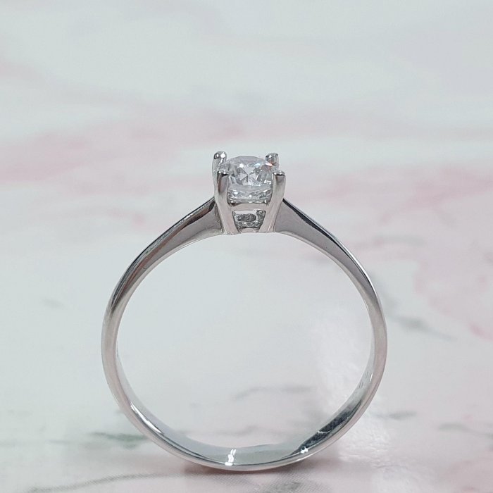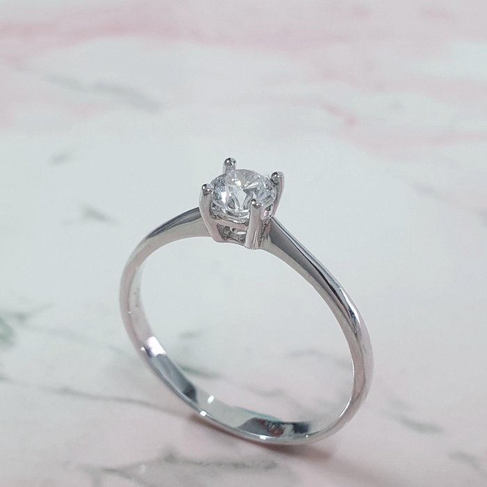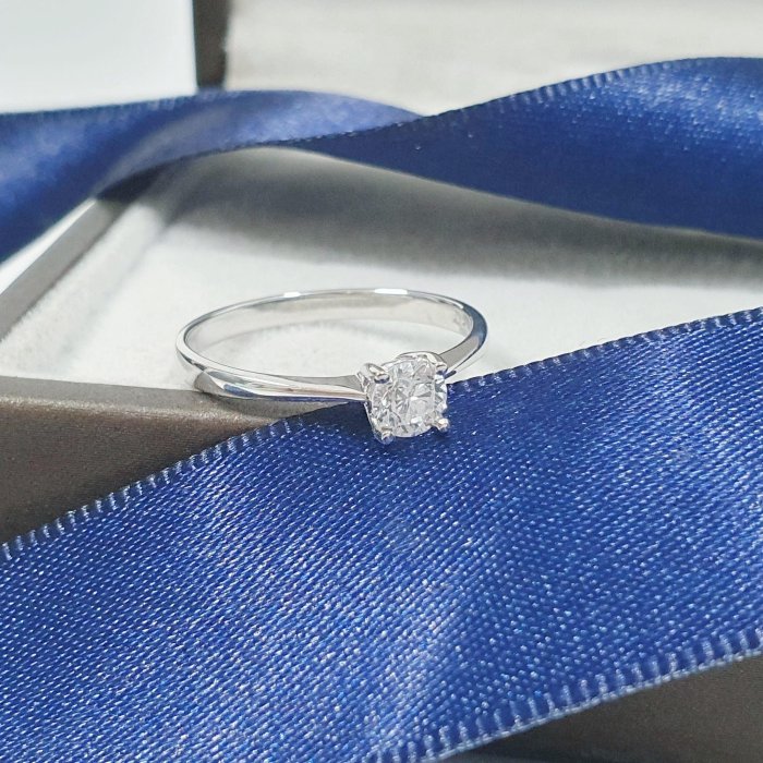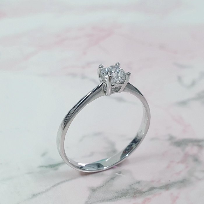 天然鑽石女戒 單鑽4爪款 主鑽32分 8心8箭 750K金材質 國際圍10.5號 面寬0.45cm 總重0.43錢 附精美盒裝 店保卡