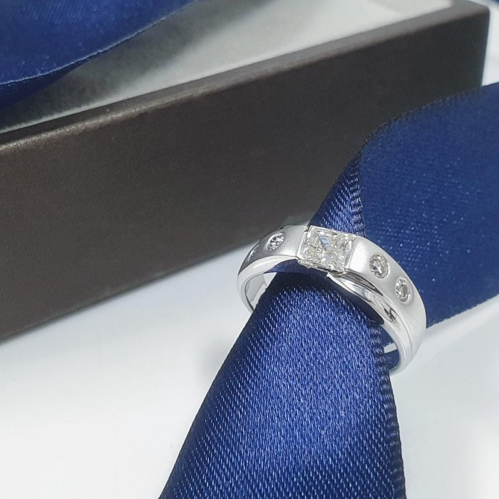 天然鑽石戒指 方型切割 四方鑽 主鑽33分 18K金鑽石台 國際圍8號 面寬0.5cm 總重0.77錢 附精美盒裝 店保卡
