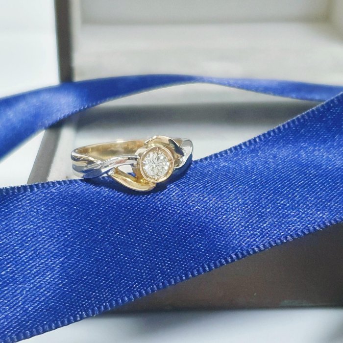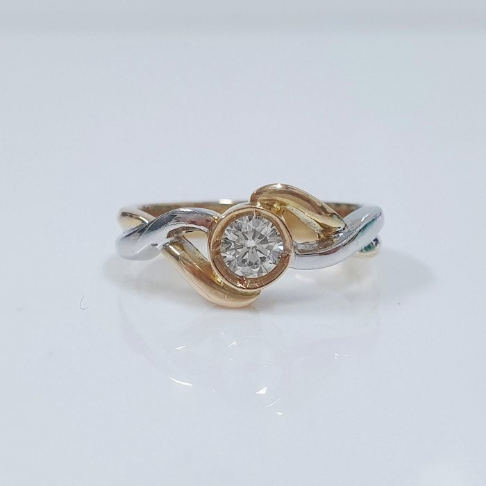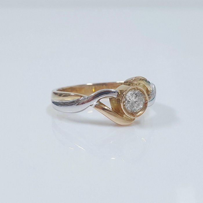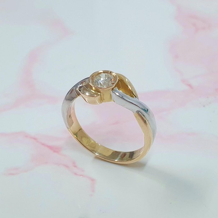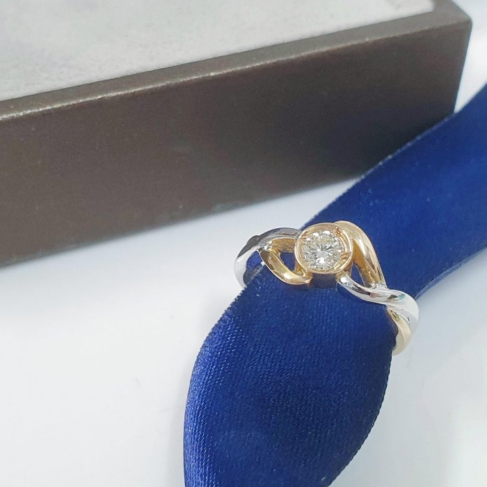 天然鑽石女戒 雙色戒台 主鑽30分 8心8箭 18K金戒台 國際圍11號 面寬0.75cm 1.2錢 附精美盒裝 店保卡