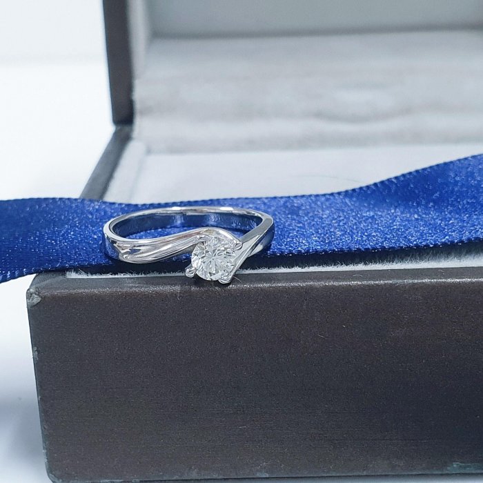 天然鑽石女戒 4爪流線造型 主鑽30分 8心8箭 585K金材質 國際圍8號 附精美盒裝 店保卡