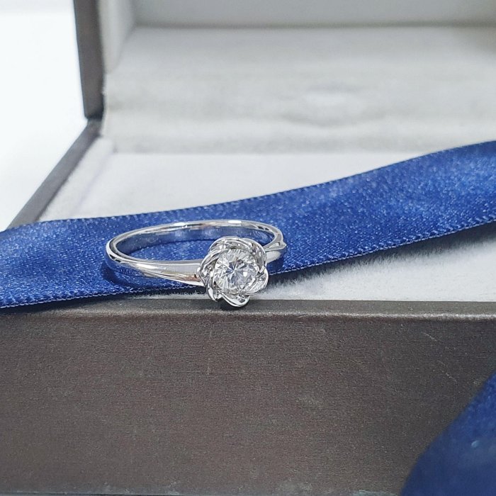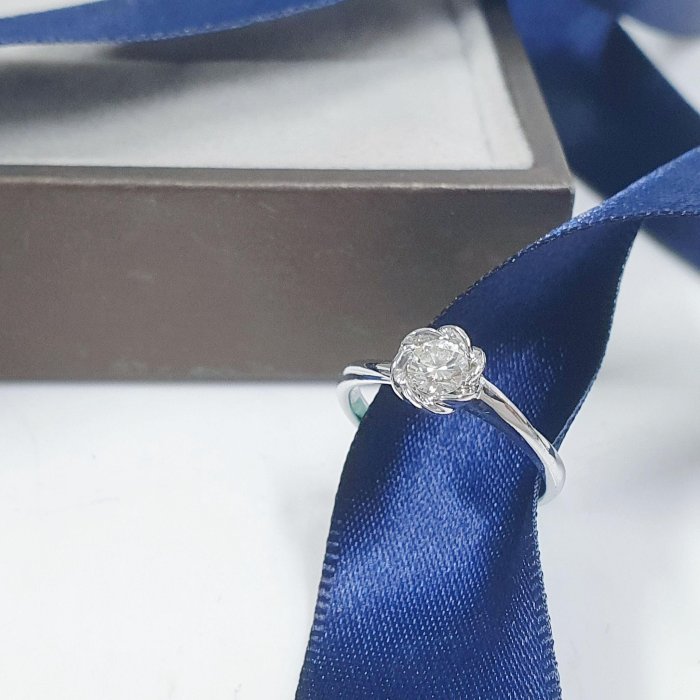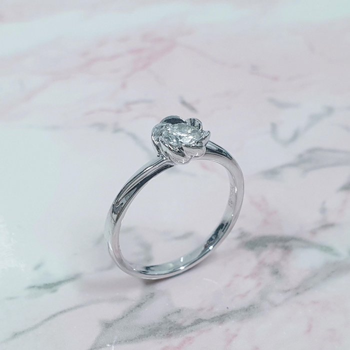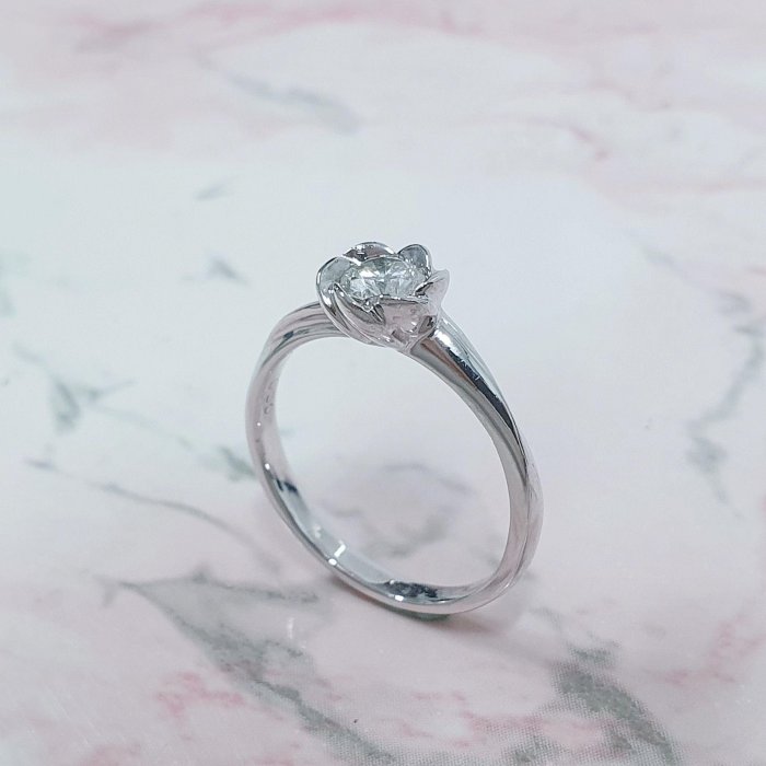 天然鑽石戒指 精緻小物 花朵造型 主鑽30分 PT950白金材質 國際圍10號 面寬0.7cm 總重1.04錢 精美盒裝 店保卡