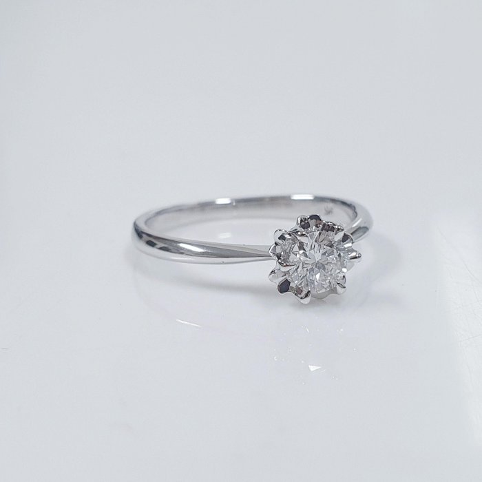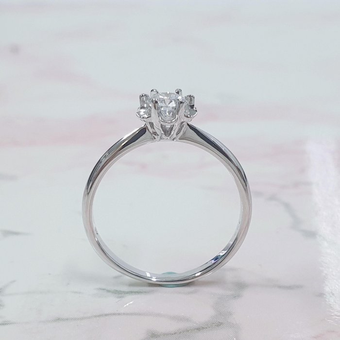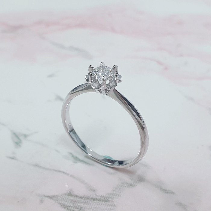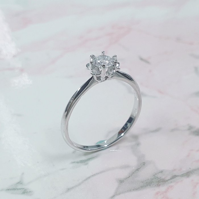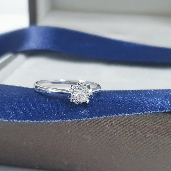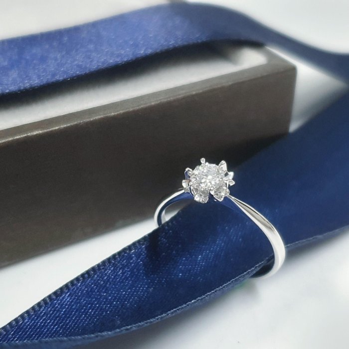 天然鑽石女戒 花朵造型 主鑽30分 8心8箭 白K金材質 國際圍10.5號 面寬0.42cm 總重0.41錢 附精美盒裝 店保卡