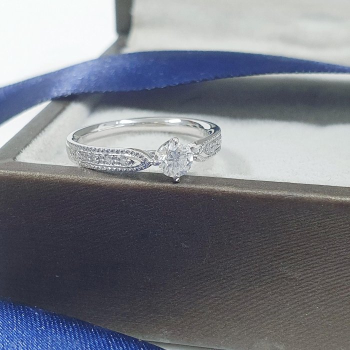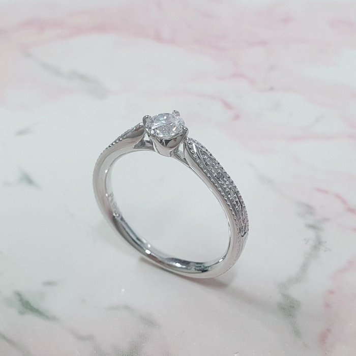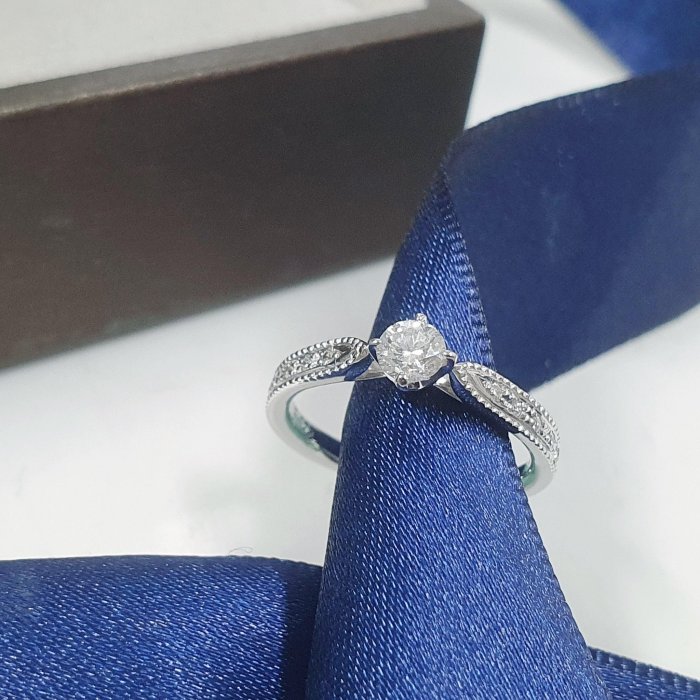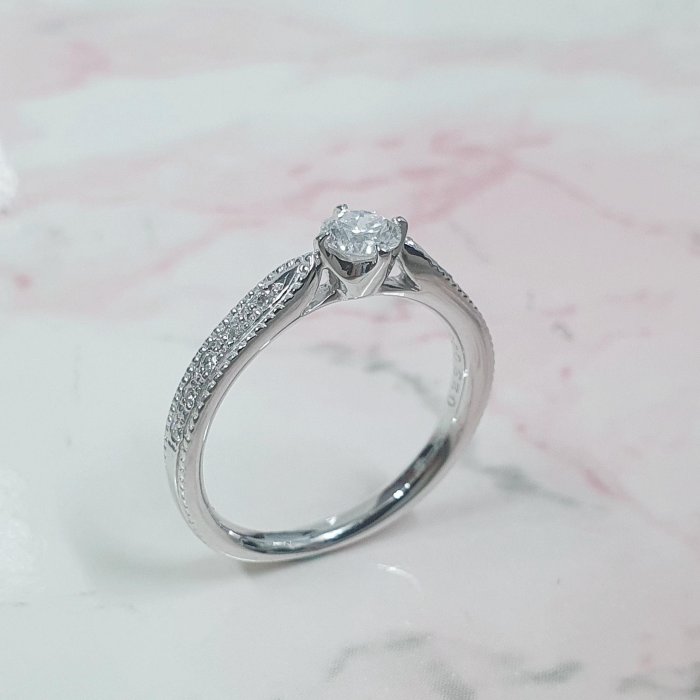天然鑽石女戒 優雅造型 主鑽23分 配鑽0.06ct PT900白金材質 國際圍8.5號 面寬0.5cm 總重0.92錢 附精美盒裝 店保卡