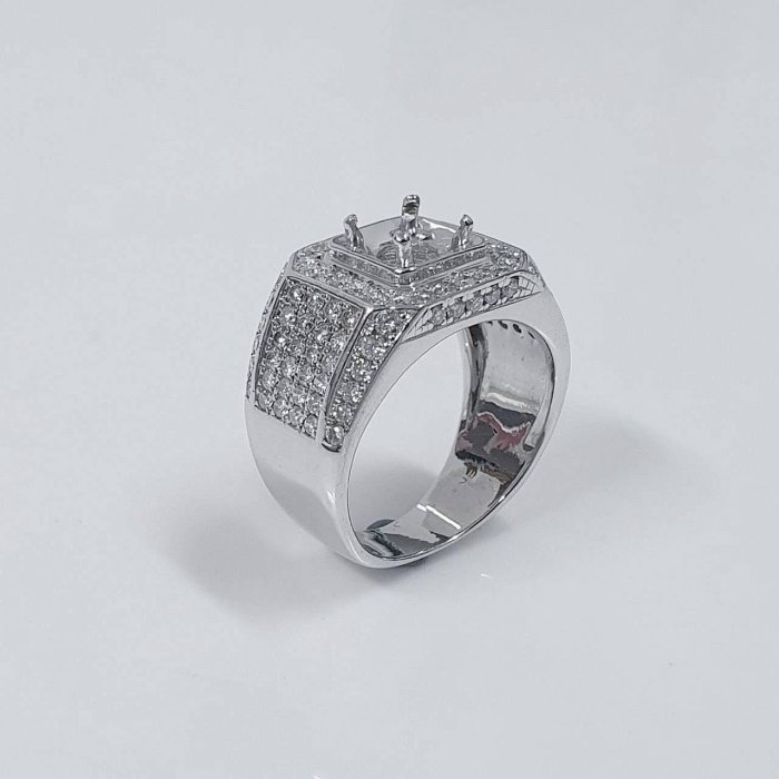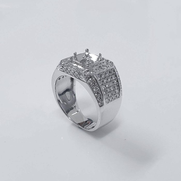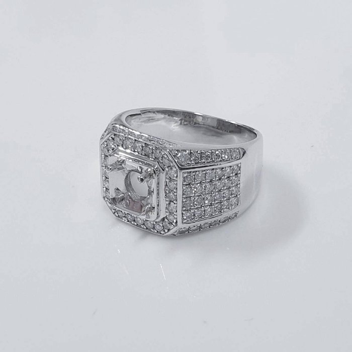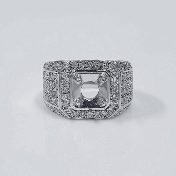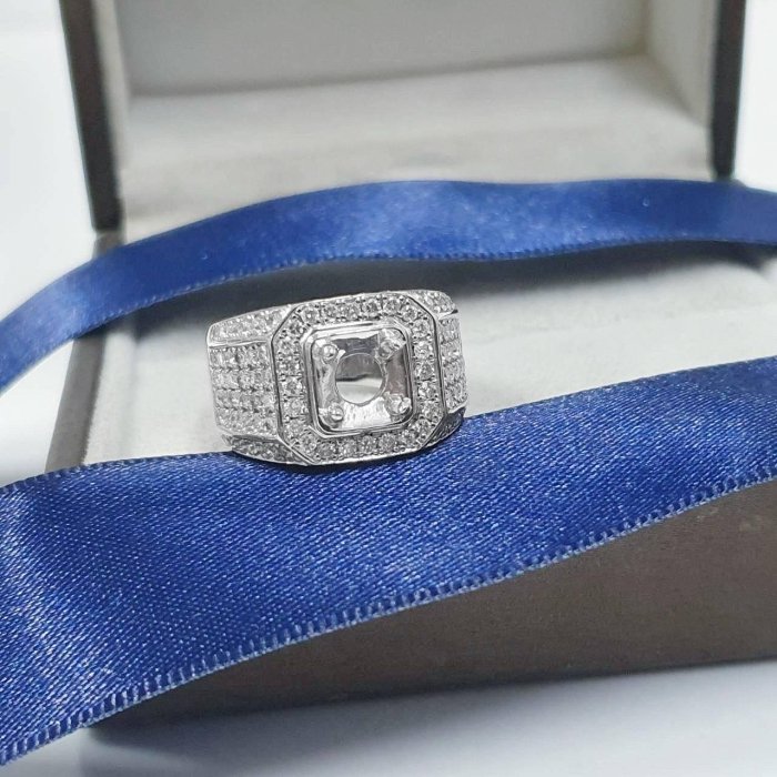 全新品 天然鑽石男戒空台 適用1~1.3克拉 白K金戒台 配鑽約1.06ct 國際圍12號 面寬1.25cm 重2.05錢 精美盒裝 店保卡