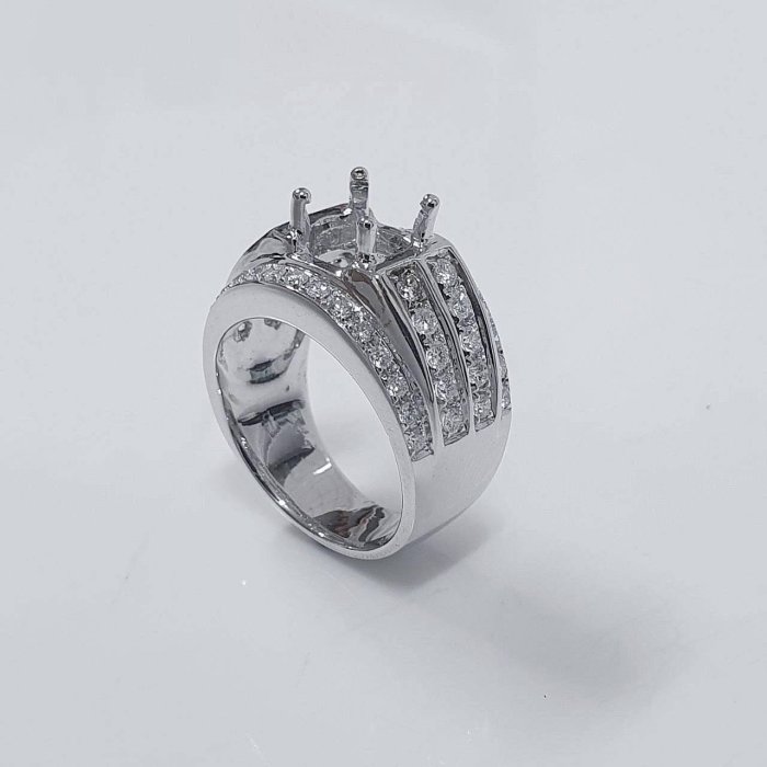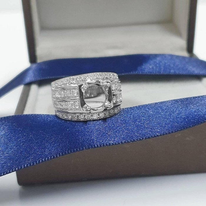 款式: 天然鑽石男戒空台 豪華滿鑲造型