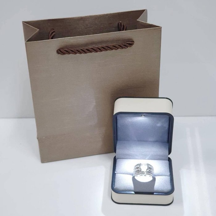 材質: 14K金戒台 / 國際圍15號 / 面寬1.4cm / 重3.28錢 / 配鑽約1.21ct