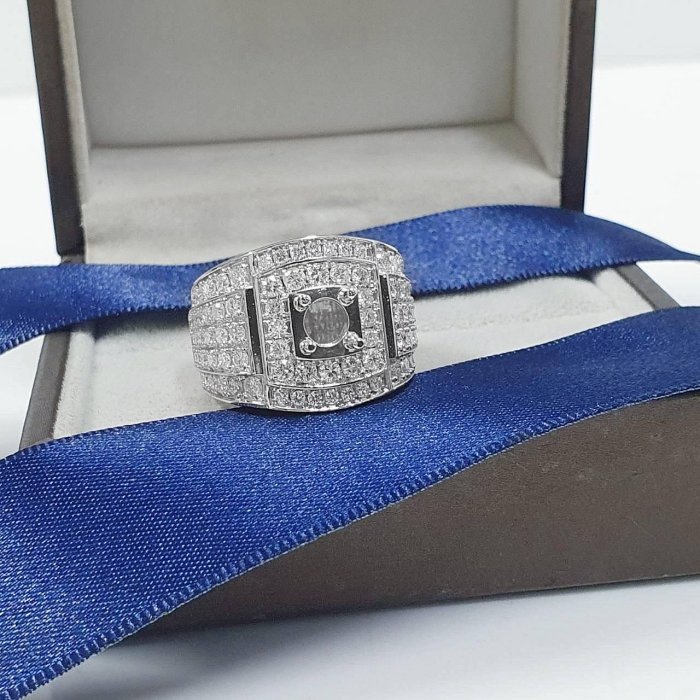 全新品 天然鑽石男戒空台 適用1~1.3克拉 豪華霸氣款 14K金戒台 配鑽約2.12ct 國際圍15號 面寬1.7cm 重3.43錢 精美盒裝 店保卡
