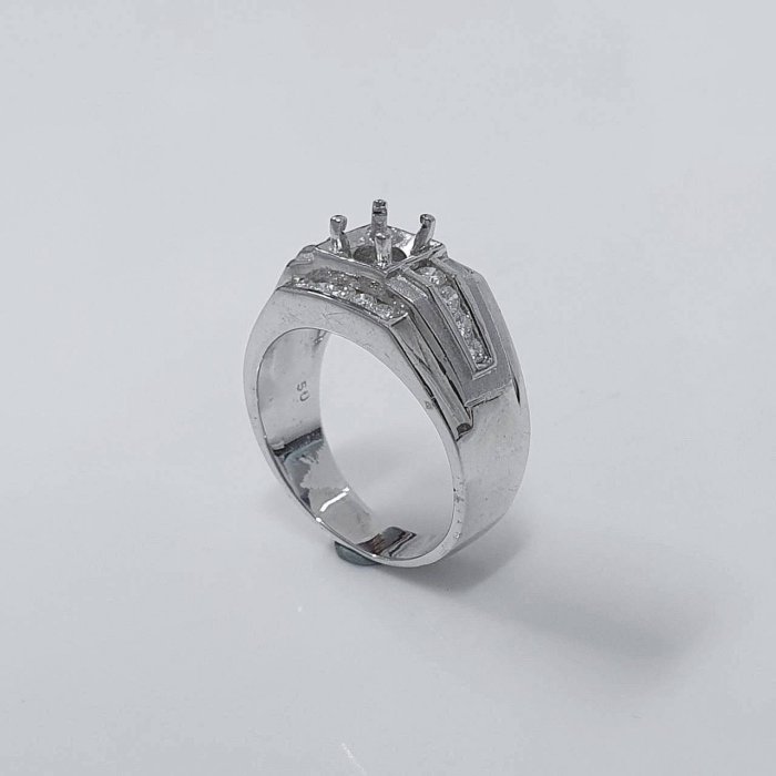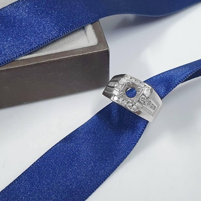 天然鑽石男戒空台 霧感線條夾鑽 |