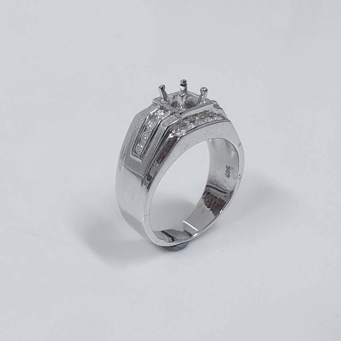 14K金戒台 / 國際圍14.5號 / 面寬1cm / 重2.16錢 / 配鑽約0.46ct |